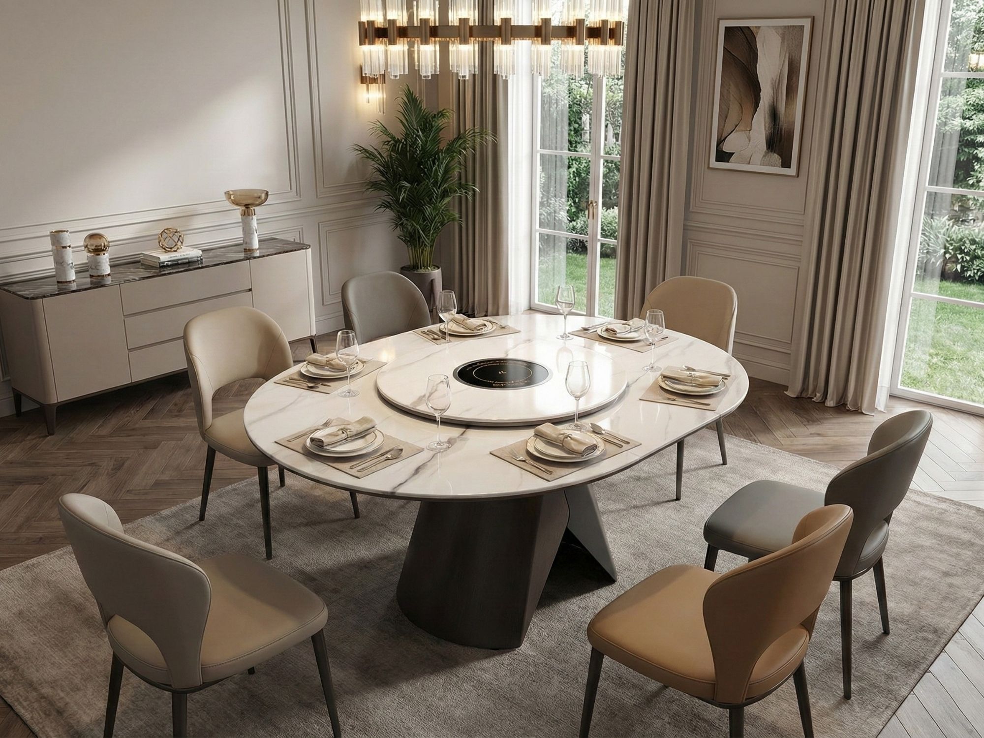 Chân thép không gỉ chấc chắn tạo lên sự sang trọng cho phòng ăn