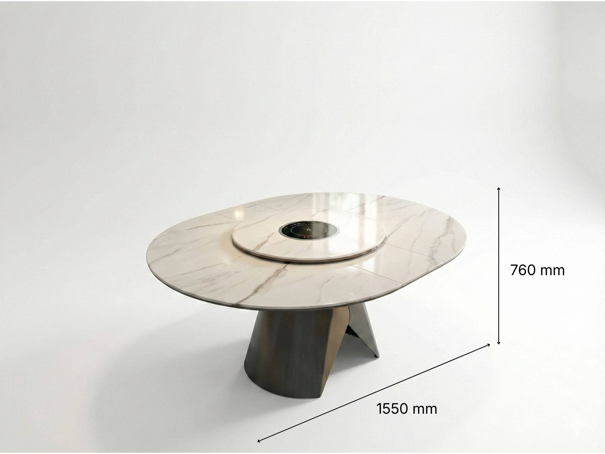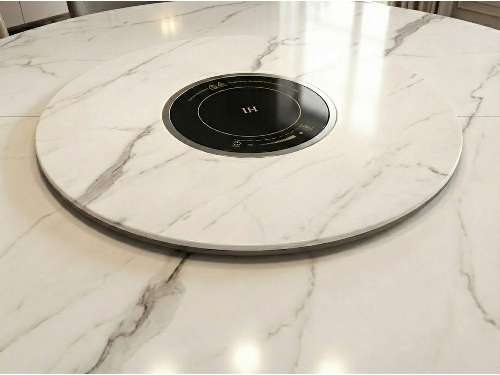 | Chất liệu | Chân gỗ Sồi tự nhiên, Mặt đá siêu pha lê, có gắn bếp từ. |
