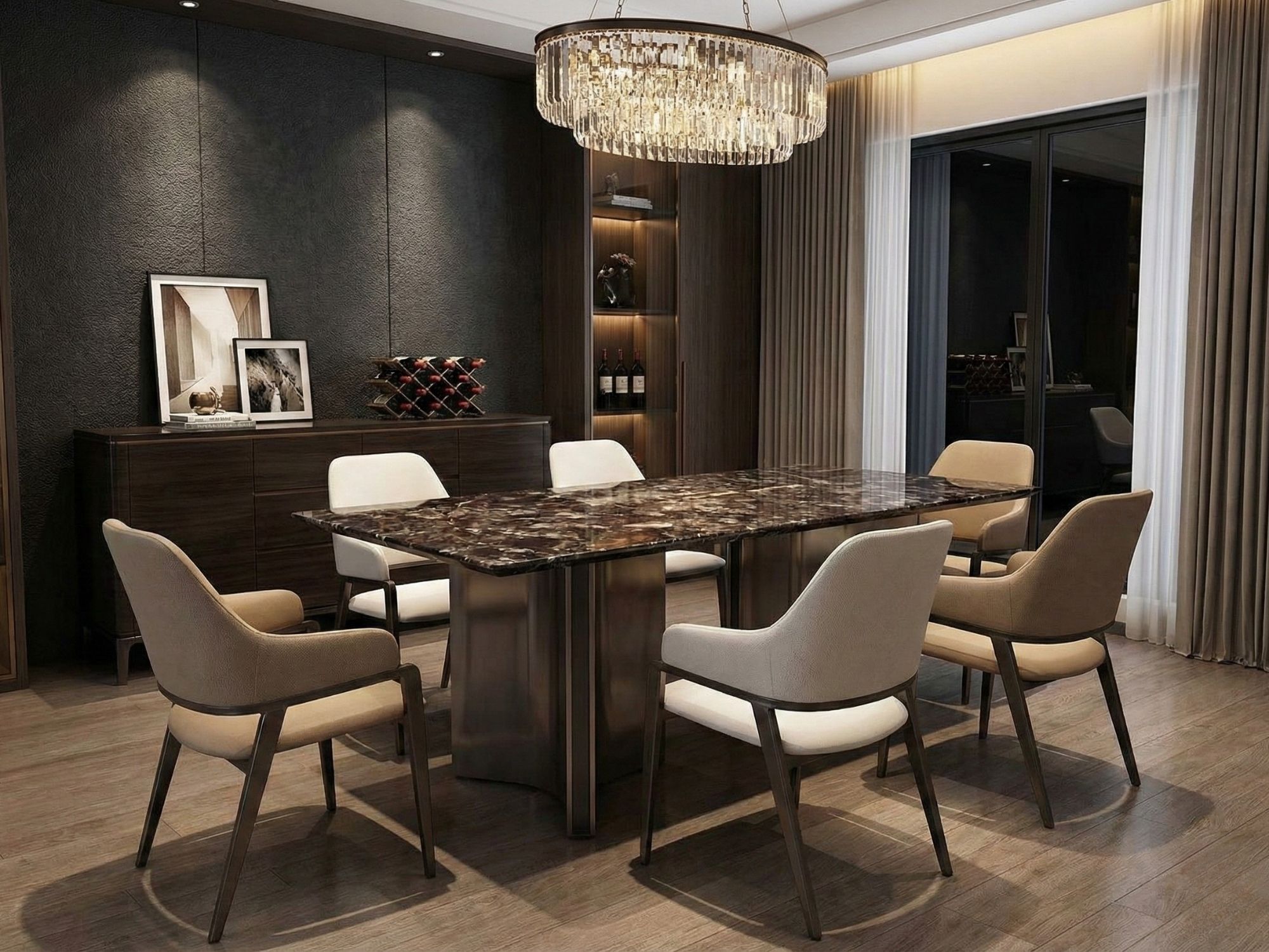 Chân thép không gỉ chấc chắn tạo lên sự sang trọng cho phòng ăn