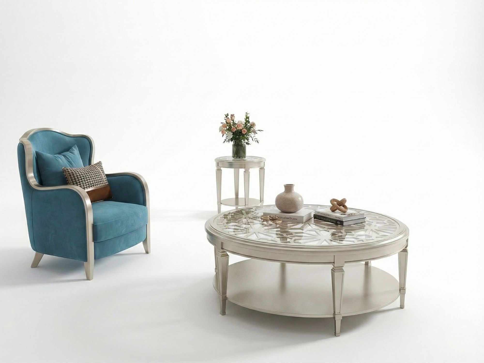 Mua Bàn Trà Tròn Mặt Kính Phong Cách Mỹ BTCJ001-12 tại Nội thất Gia Khánh