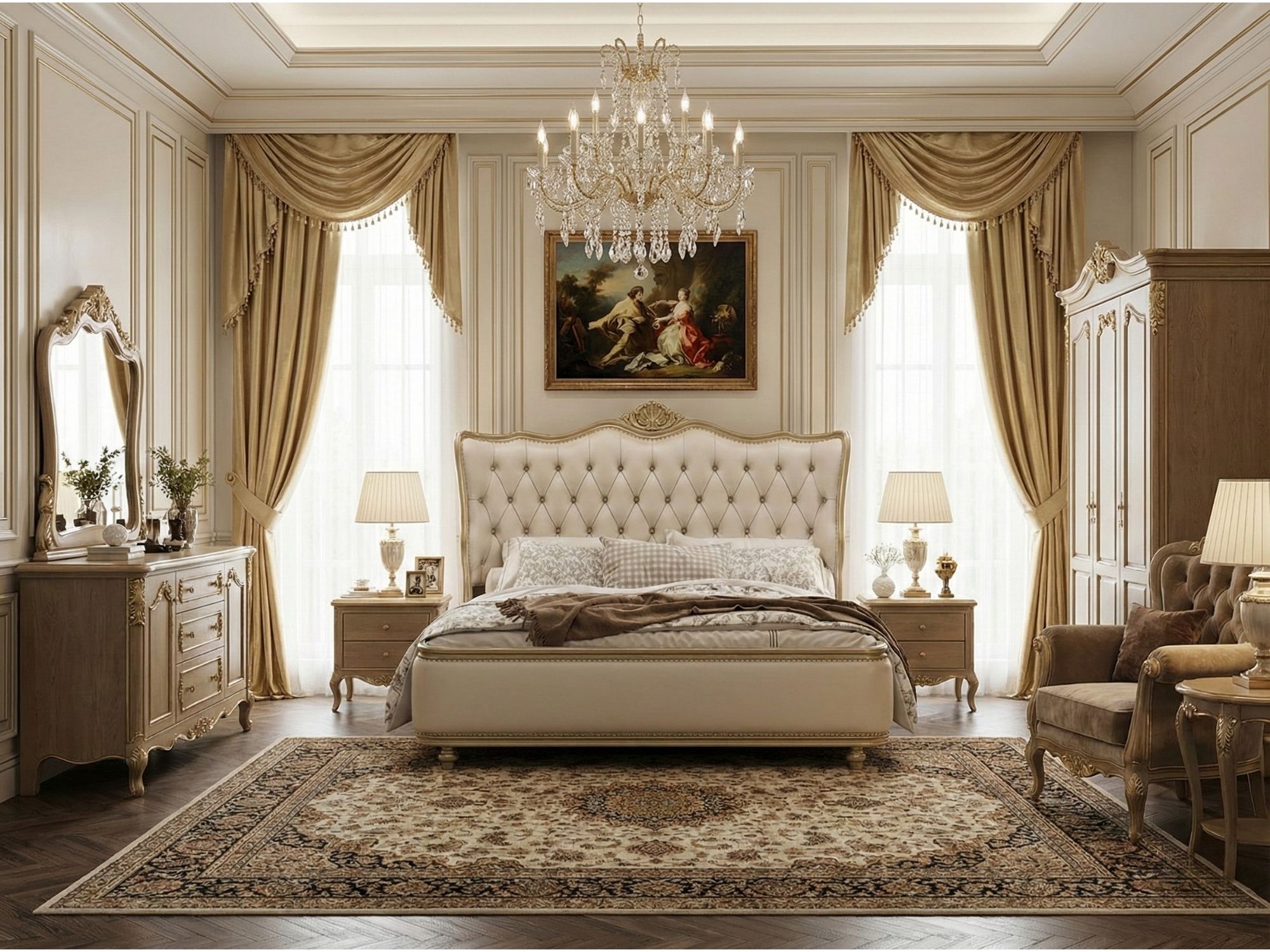Sử dụng giường ngủ bọc da cao cấp đang là xu hướng được ưa chuộng trong nội thất hiện nay. Giường ngủ da có thể đáp ứng được đầy đủ các yêu cầu về tính thẩm mỹ, sự đa dụng, tiện nghi. Việc lựa chọn một chiếc giường da phù hợp với công năng sử dụng và sở thích sẽ mang đến cho gia chủ những trải nghiệm tuyệt vời nhất khi nghỉ ngơi. Bài viết dưới đây, Nội Thất Gia Khánh sẽ đem đến sản phẩm Giường Ngủ Tân Cổ Điển phong Cách Mỹ GI2803-18