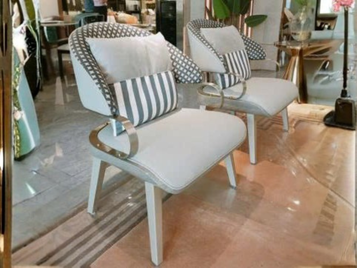 | Chất liệu | Băng 2+4 : Bề mặt tiếp xúc là lớp da thật + trang trí gỗ uốn cong bằng gỗ tự nhiên, Ghế đơn : Vật liệu gỗ tự nhiên phủ veneer + thép không gỉ màu champagne + da thật + in hoa |
