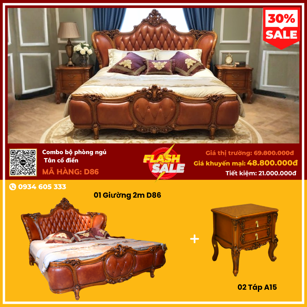 | Tên sản phẩm | Combo Giường Ngủ Tân Cổ Điển D86 |