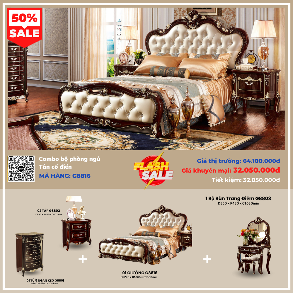 Combo Bộ Phòng Ngủ Tân Cổ Điển G8816