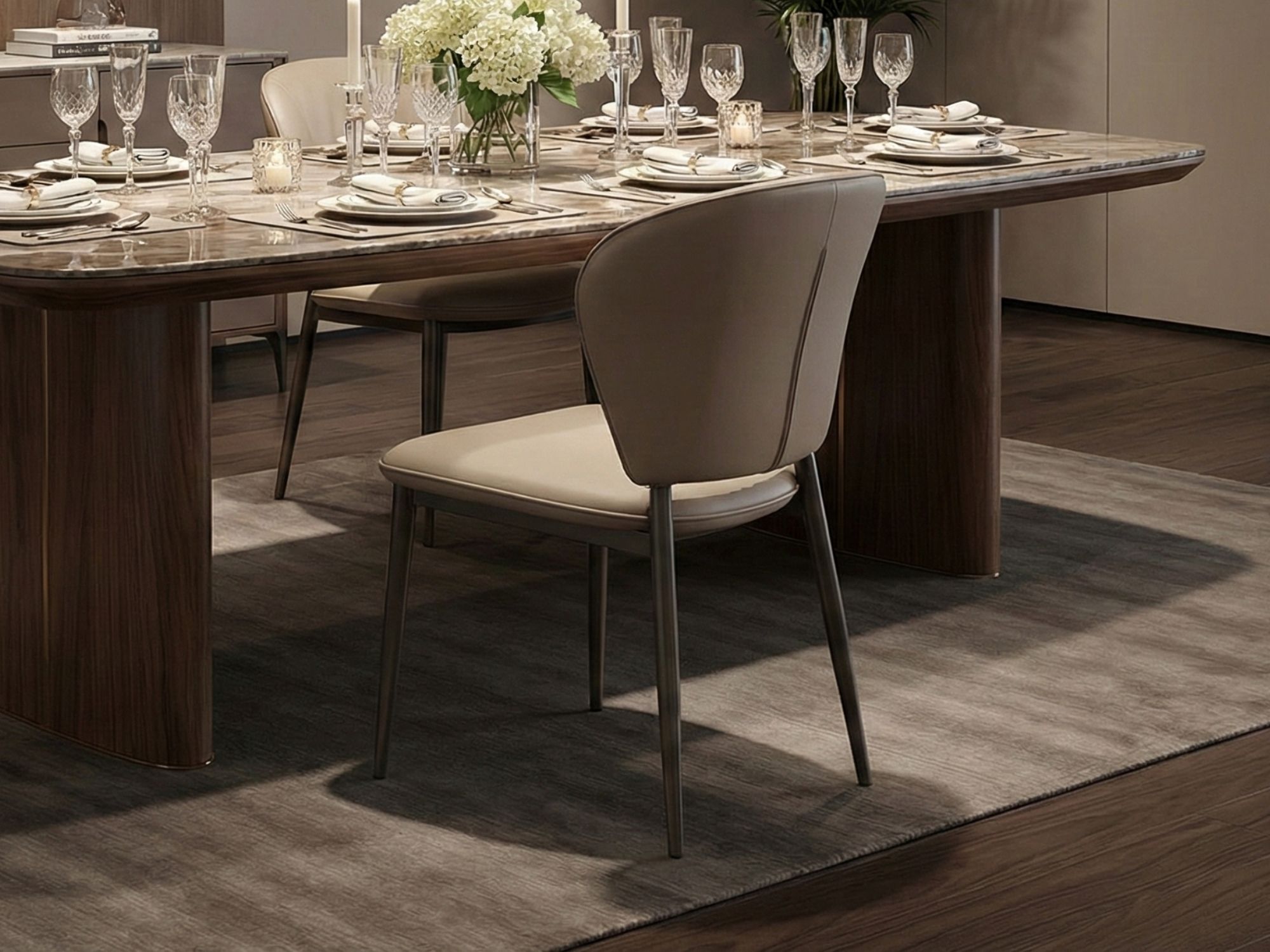 Chân thép không gỉ chấc chắn tạo lên sự sang trọng cho phòng ăn