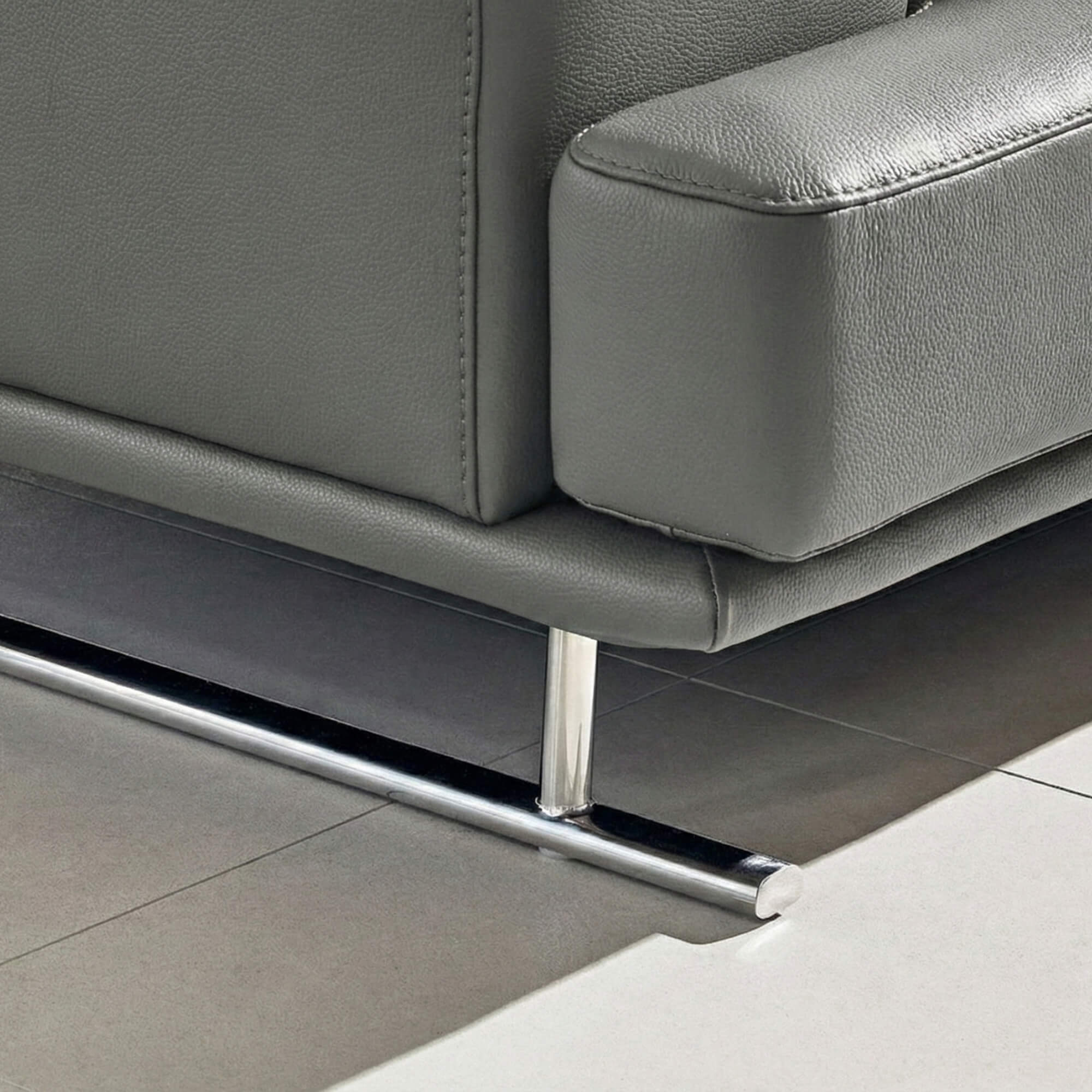 Khung gầm được làm từ thép nét chéo thanh mảnh, tăng tính thẩm mỹ và độ bền cho bộ sofa. Thiết kế chân cao giúp dễ dàng vệ sinh gầm sofa, đồng thời tạo cảm giác nhẹ nhàng, hiện đại cho không gian phòng khách.