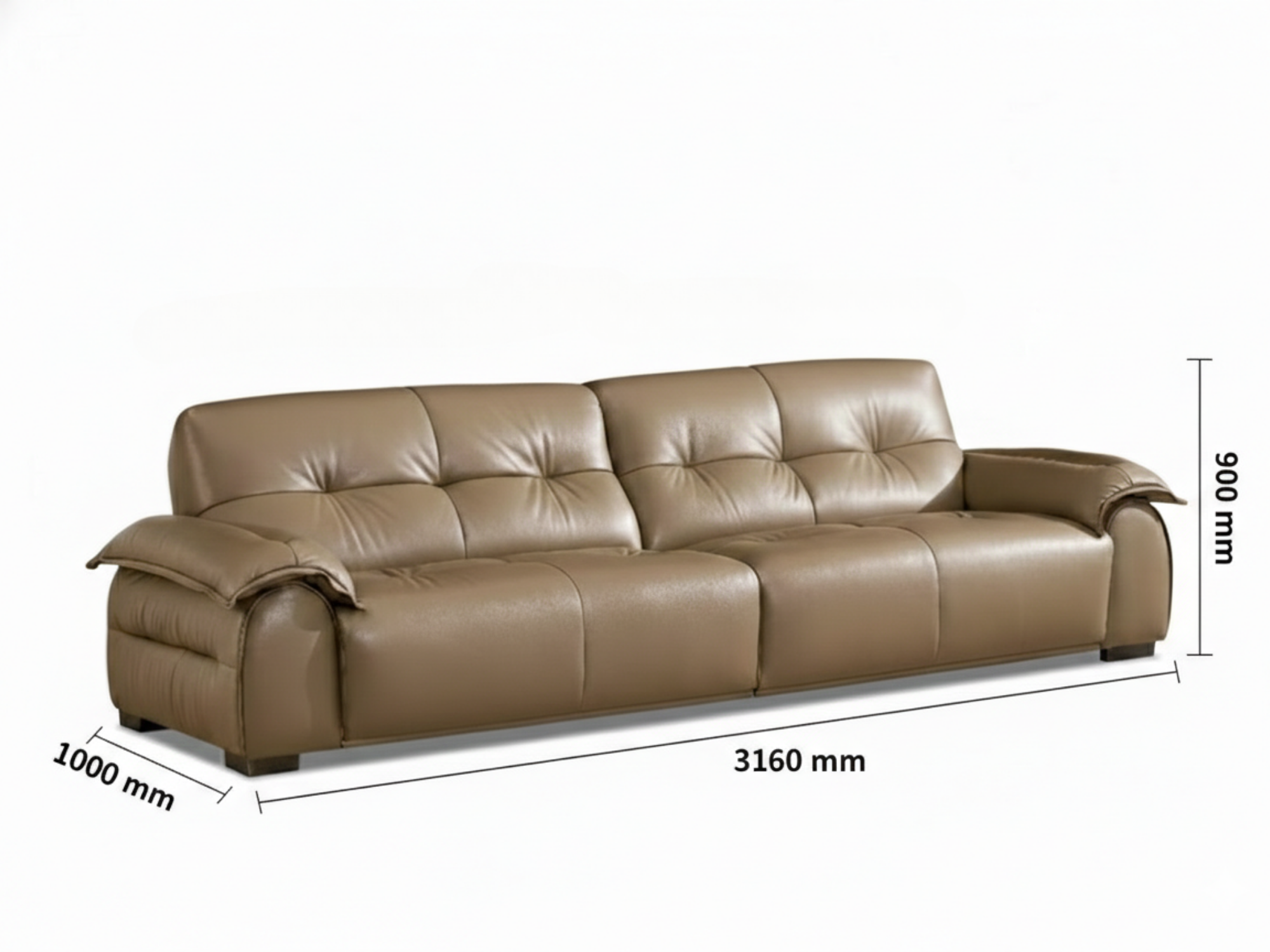 | Chất liệu | Khung đáy làm bằng gỗ Sồi đặc, lớp mút đàn hồi mật độ cao,lò xo hình rắn, bọc da bò tự nhiên toàn bộ bề mặt tiếp xúc, phần không tiếp xúc bọc da PU.. |