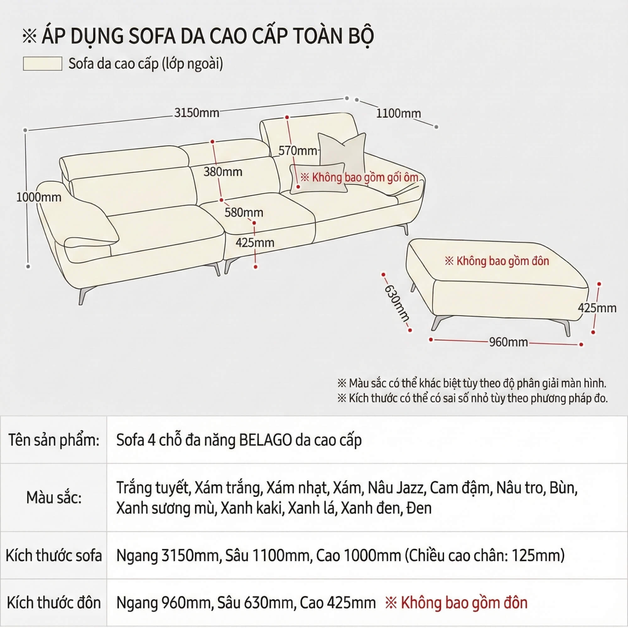 Sofa 4 Chỗ Da Nâng BELAGO: