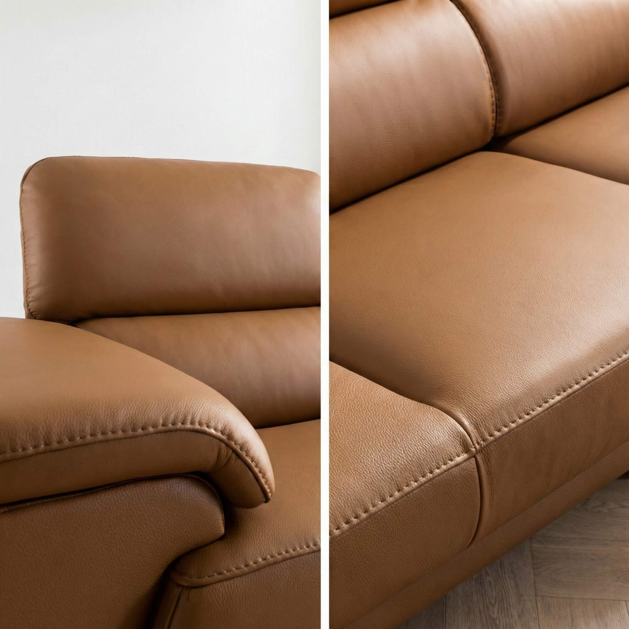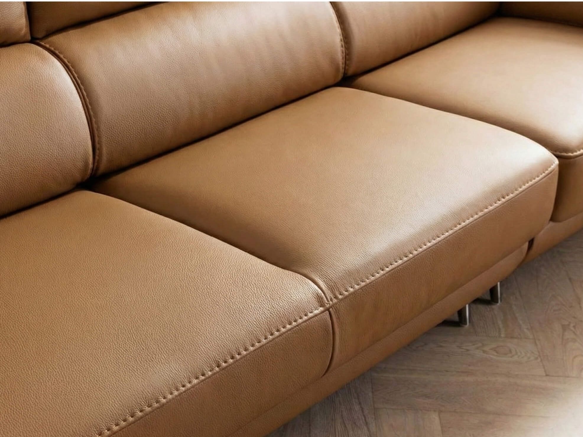 Bề mặt tiếp xúc được bọc da cao cấp, tạo cảm giác mềm mại, êm ái mỗi khi bạn ngồi hay nằm thư giãn. Chiếc sofa cao cấp này được chế tác tỉ mỉ để giảm thiểu tối đa hư hại cho da và đảm bảo sử dụng lâu dài, luôn giữ được vẻ đẹp ban đầu theo thời gian.