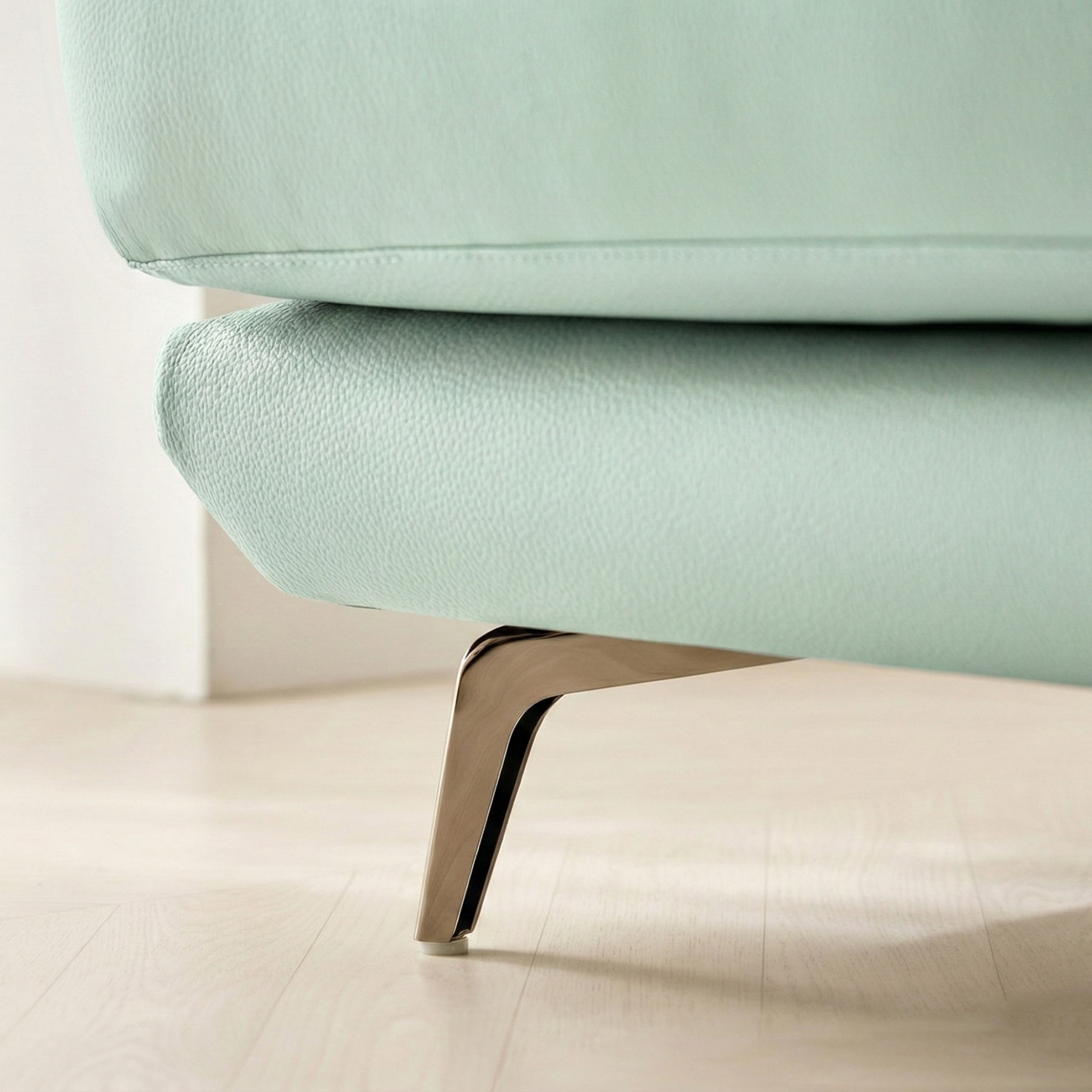 Chân ghế được làm bằng gỗ tự nhiên với lớp bảo vệ sàn chống trầy xước, đảm bảo an toàn khi sử dụng. Thiết kế chân cao giúp việc vệ sinh gầm sofa trở nên thuận tiện, đồng thời tạo cảm giác nhẹ nhàng và thoáng đãng cho không gian.