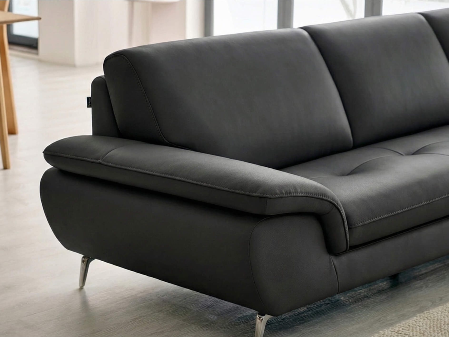 Đường may nhẹn múi gọn gàng trên đệm ngồi ngăn ngừa sự giãn da và tăng thêm vẻ bóng bẩy, sang trọng. Đệm lưng, đệm ngồi và tay vịn có thể tháo rời giúp việc vệ sinh và quản lý dễ dàng, giữ cho sofa luôn sạch sẽ, bền lâu.