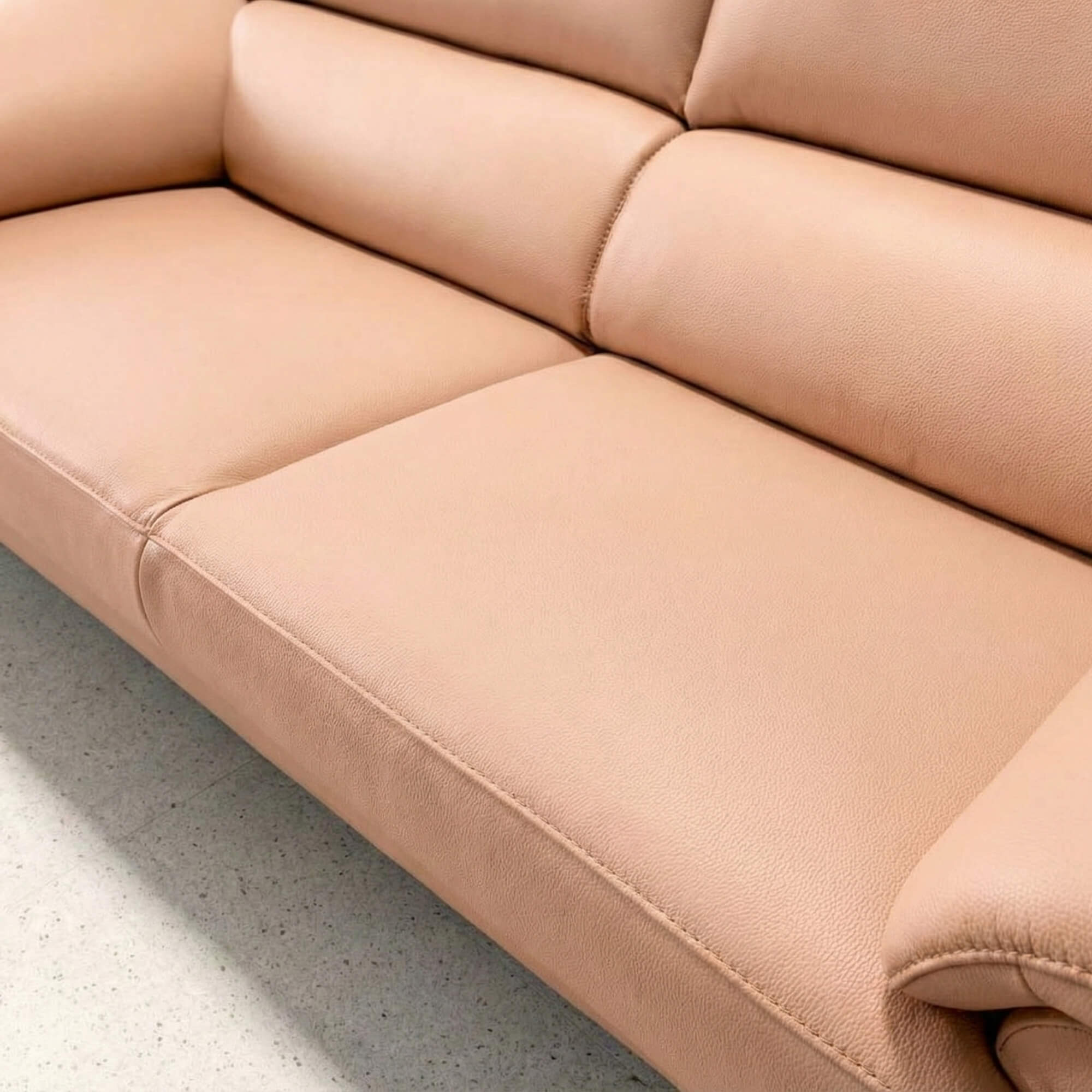 Điều đặc biệt là CONTOUR sử dụng da cao cấp bọc toàn bộ phần tiếp xúc, kể cả vùng dưới đệm ngồi nơi bàn chân thường chạm – một điểm cộng lớn cho sự bền đẹp và đẳng cấp. Đường may tỉ mỉ, mỗi đường kim mũi chỉ đều được thực hiện bởi những người thợ lành nghề, tạo nên sự hoàn thiện cho chiếc sofa phòng khách này.