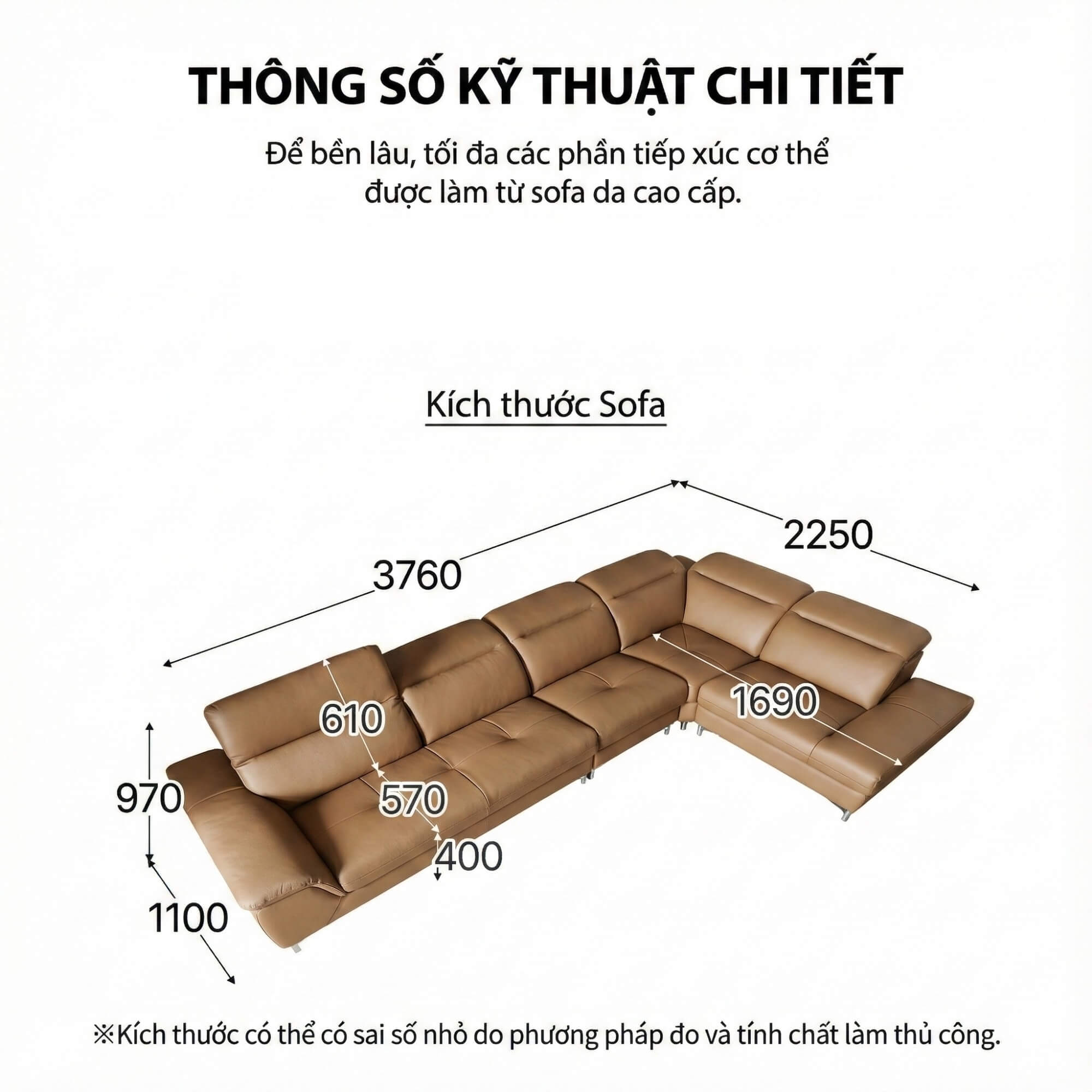 - Chân cao (100mm): Tạo không gian hiện đại và dễ dàng vệ sinh dưới gầm sofa