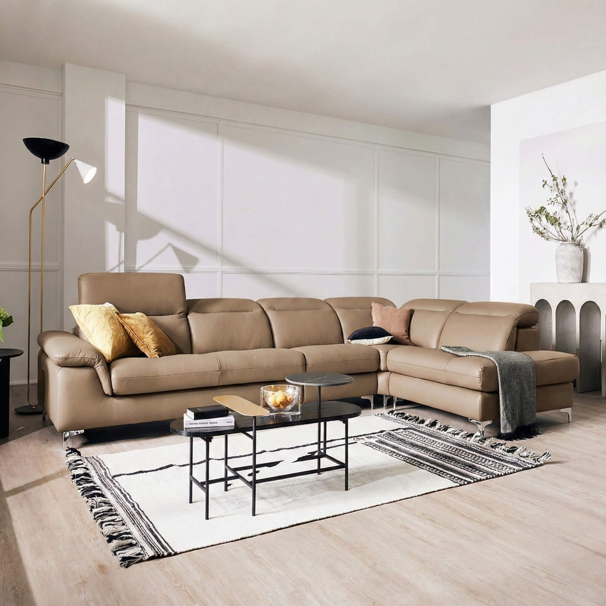 CUSHIVA không chỉ đơn thuần là một chiếc sofa góc để ngồi, mà là nơi lưu giữ những khoảnh khắc sum vầy ấm áp của gia đình bạn. Với thiết kế hiện đại, kiểu dáng tinh tế không rườm rà, CUSHIVA mang đến vẻ đẹp gọn gàng nhưng không kém phần ấn tượng cho mọi không gian phòng khách.