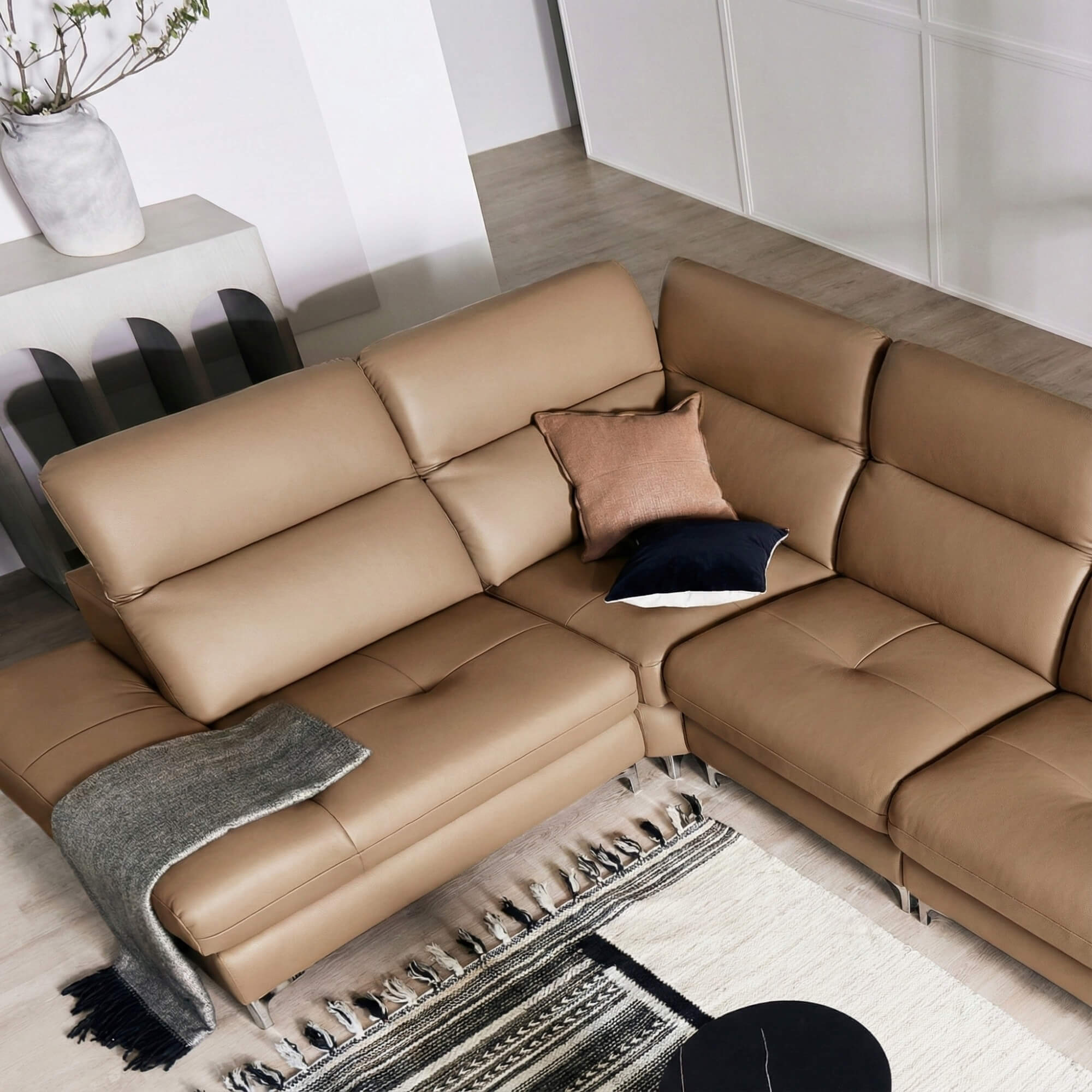 Thiết kế tựa đầu có thể điều chỉnh không chỉ mang lại sự thoải mái mà còn giúp không gian phòng khách của bạn trở nên rộng rãi và thoáng đãng hơn khi không sử dụng. Đây là giải pháp thông minh cho những ai yêu thích sự linh hoạt trong thiết kế nội thất.