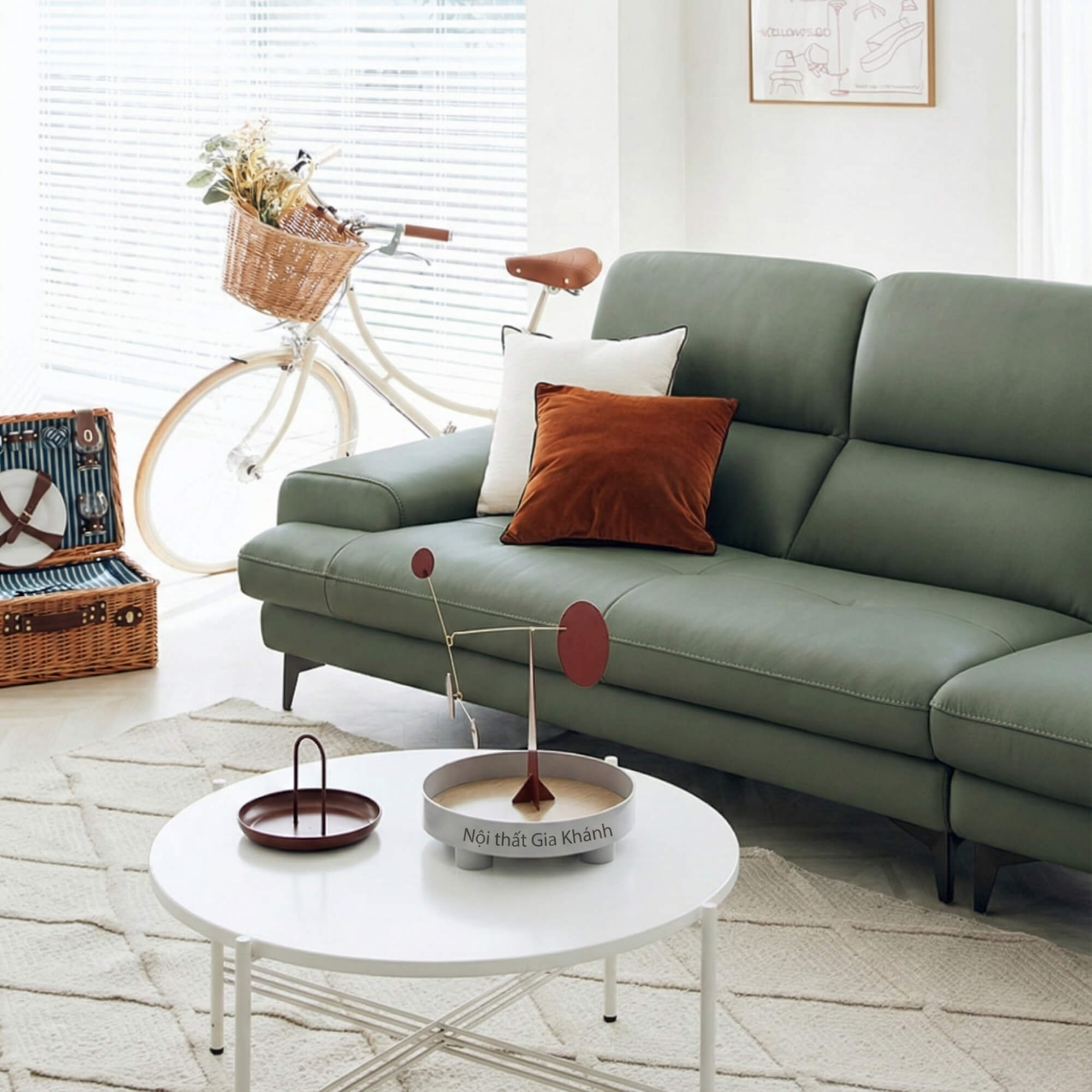 Điểm nổi bật đầu tiên của sofa FAIRCOME chính là chất liệu sofa da cao cấp được Nội thất Gia Khánh tuyển chọn kỹ lưỡng. Mỗi tấm da được kiểm tra nghiêm ngặt về độ bền, độ mềm mại và khả năng chống trầy xước. Bề mặt da mịn màng, đường may tinh tế, hoàn thiện gọn gàng – tất cả tạo nên vẻ đẹp sang trọng và hiện đại cho không gian sống.