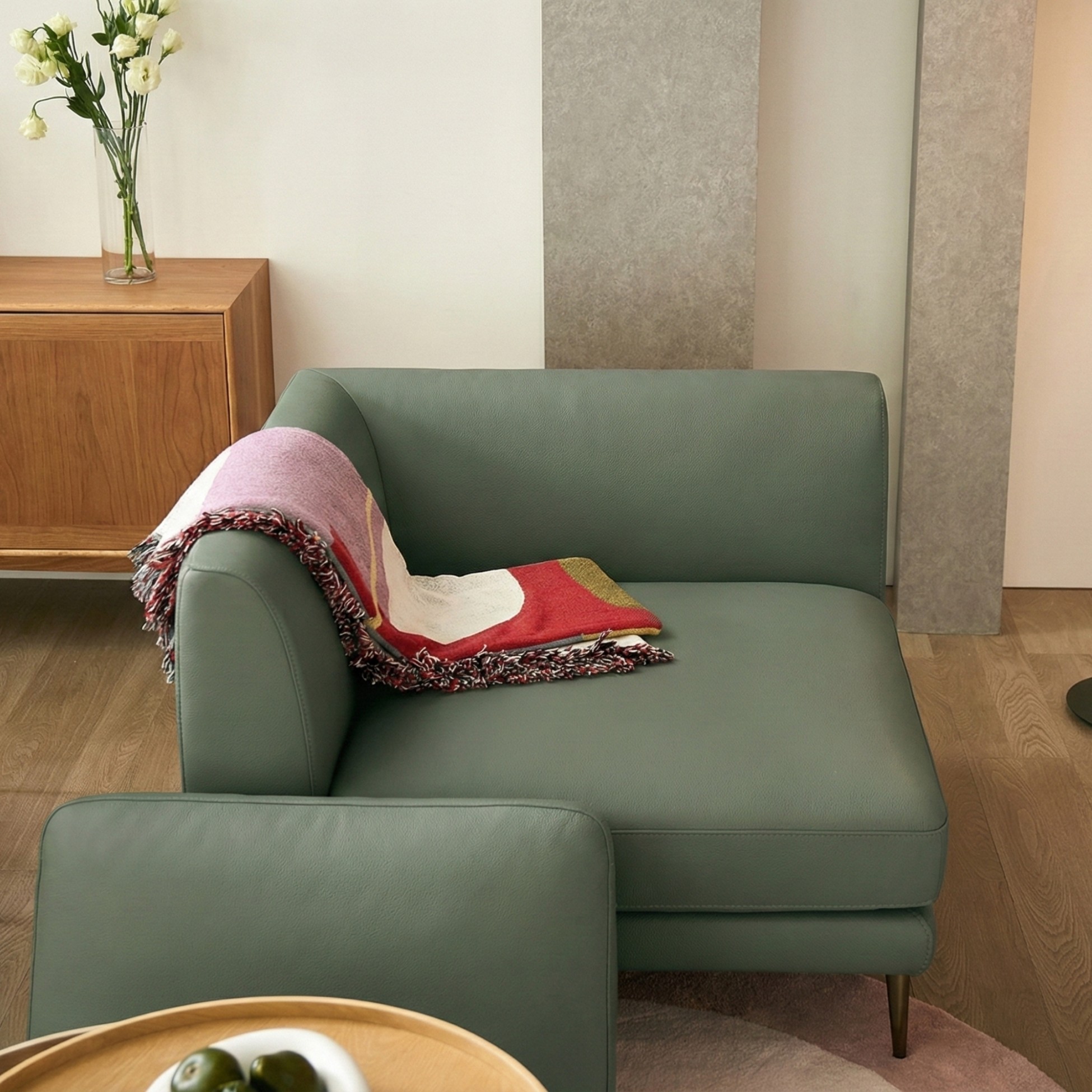Chân ghế cao với thiết kế tinh tế không chỉ giúp cho việc làm sạch dễ dàng dưới gầm sofa mà còn mang lại sự thoải mái khi ngồi hay nằm. Điểm nhấn là đường cong tự nhiên kết nối liền mạch với tựa lưng, tạo nên một tổng thể hài hòa và ấn tượng. Những chi tiết nhỏ như vậy chính là điều làm nên sự khác biệt của một chiếc sofa cao cấp như GENESIS.