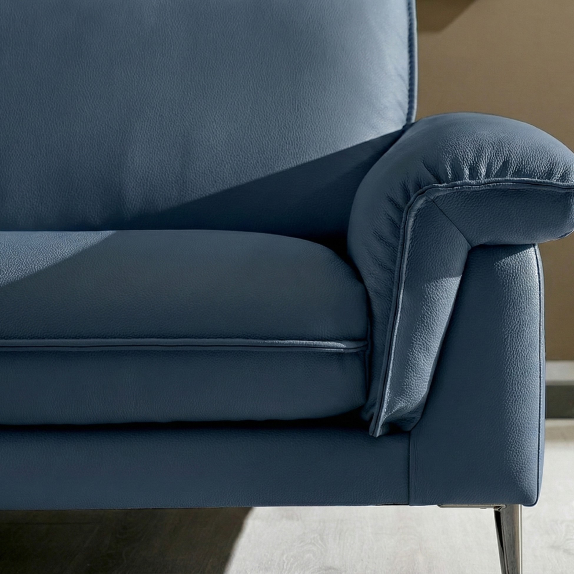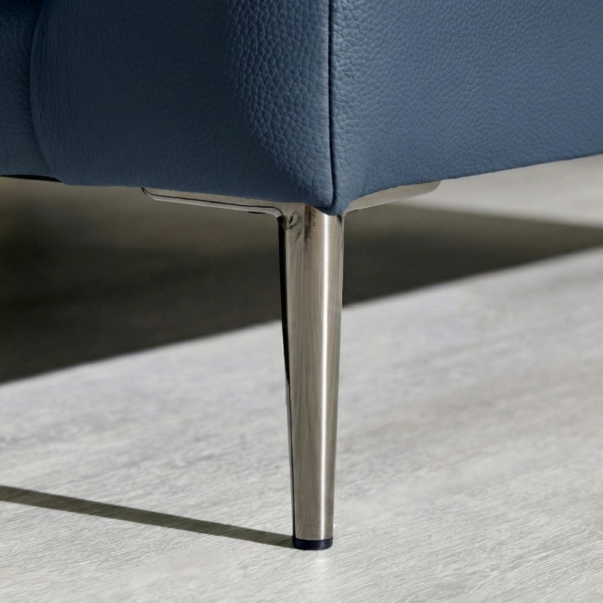 Chân sofa được làm từ kim loại chắc chắn, mạ chrome sang trọng, vừa đảm bảo độ bền vừa tạo điểm nhấn hiện đại cho tổng thể thiết kế.