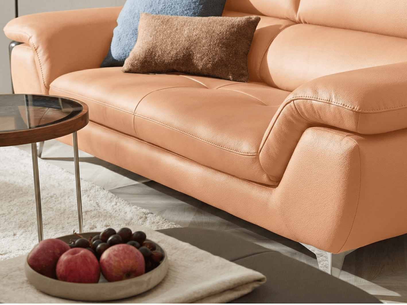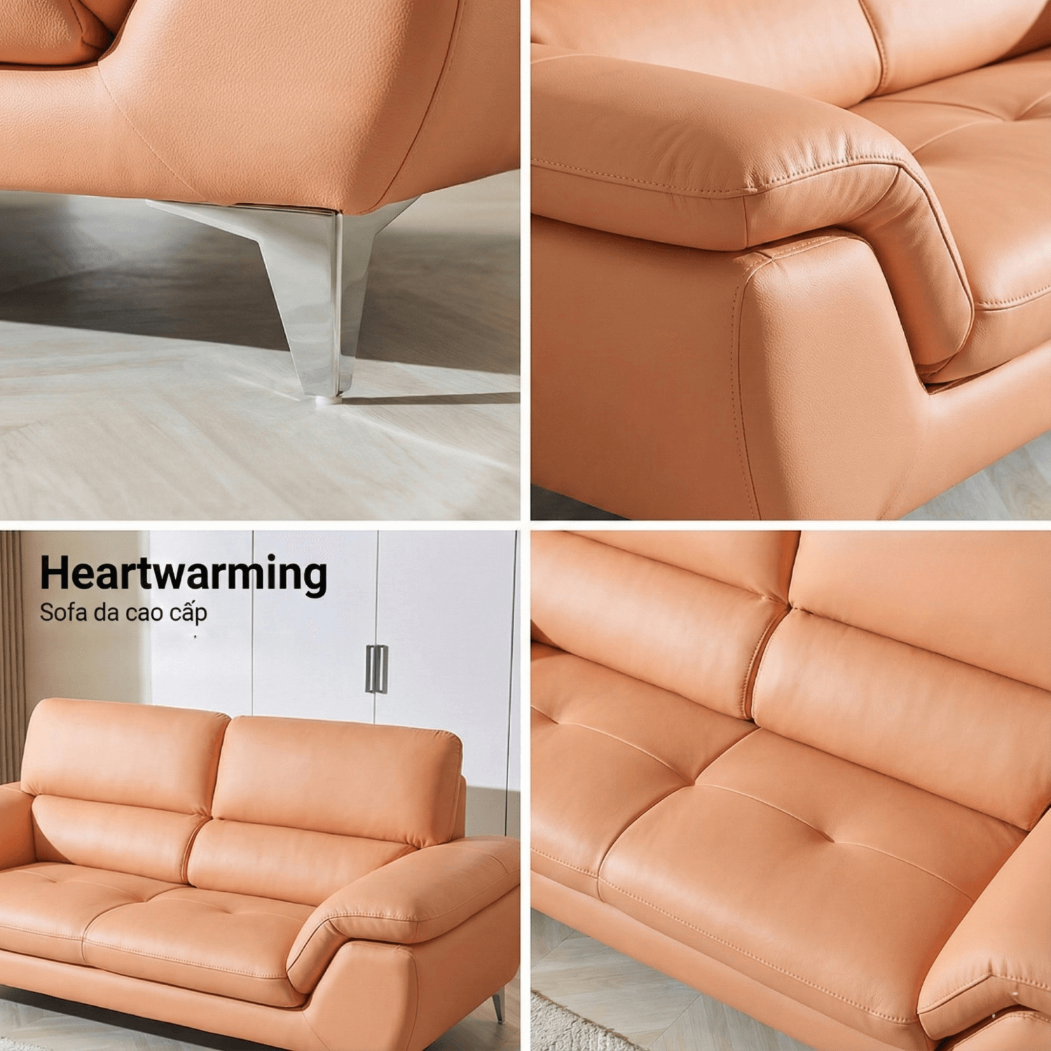 HEARTWARMING sử dụng da cao cấp được tuyển chọn kỹ lưỡng, mang lại cảm giác êm ái, mềm mại và sang trọng. Bề mặt sofa phòng khách được hoàn thiện thủ công với đường may cân đối, không lo da bị giãn. Điều này không chỉ đảm bảo độ bền cao mà còn mang lại vẻ đẹp tinh tế, bền bỉ theo thời gian. Đặc biệt, sofa HEARTWARMING chống trầy xước tốt, dễ dàng vệ sinh và bảo quản.
