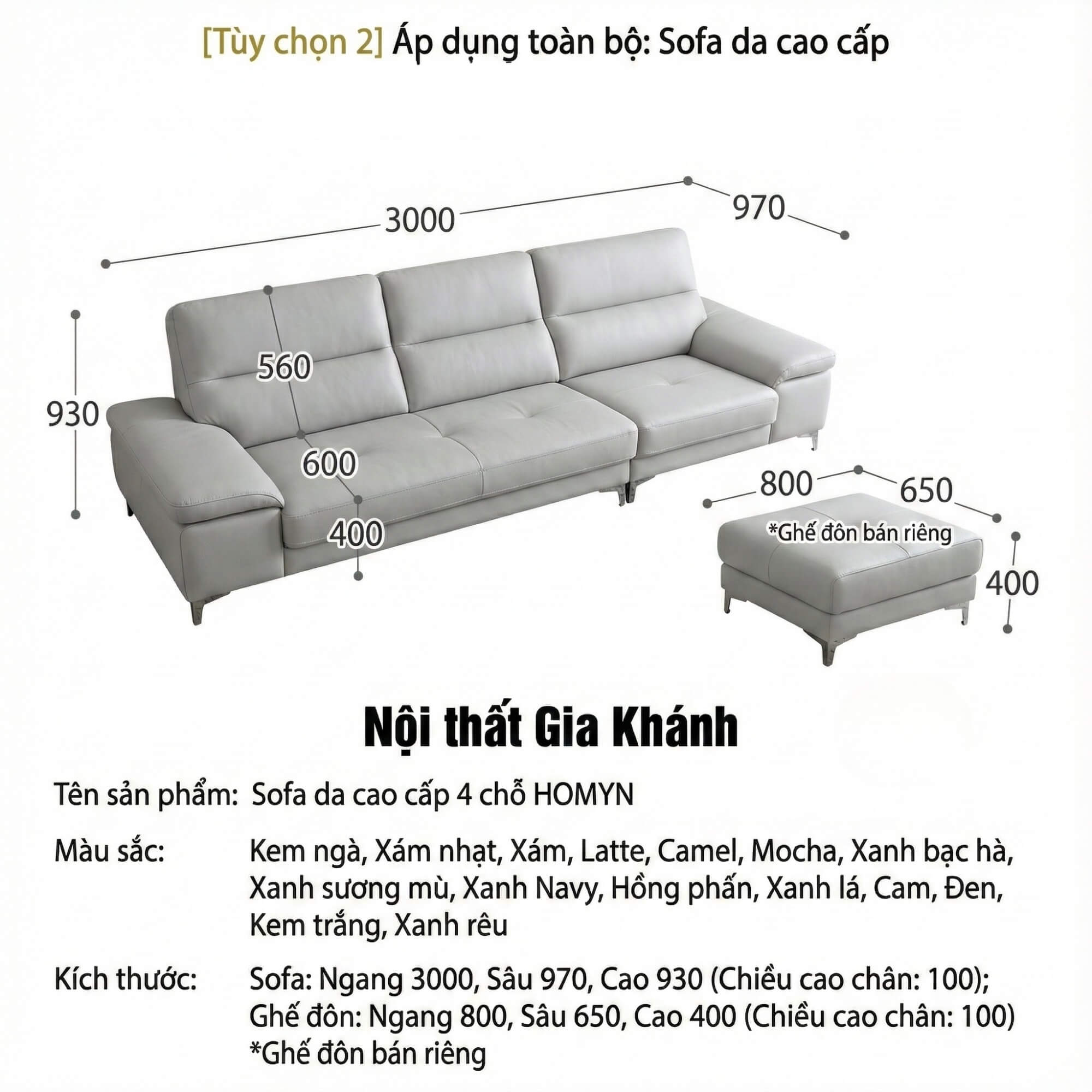 | Tên sản phẩm | Sofa da cao cấp 4 chỗ HOMYN |