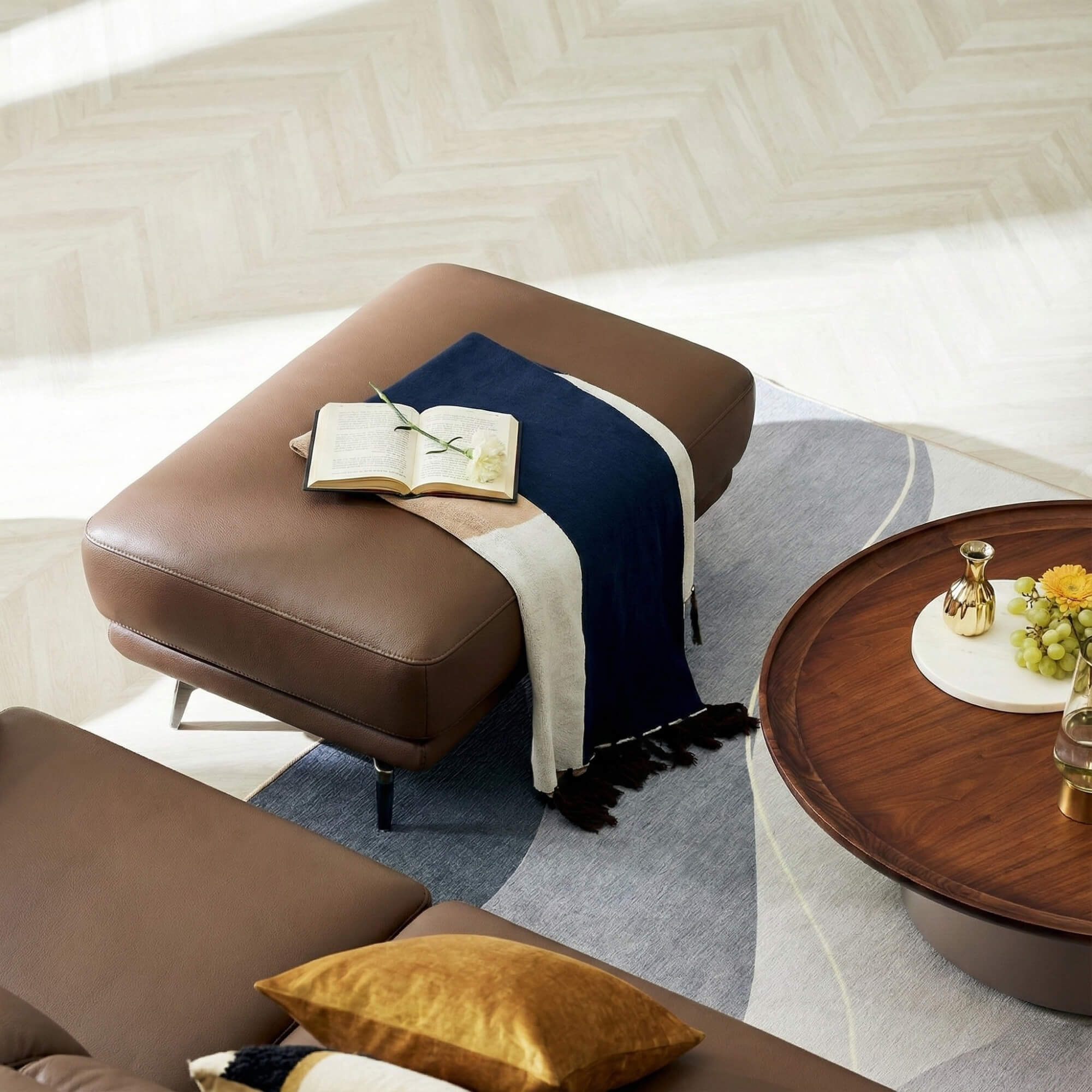 Đi kèm với bộ sofa MELLARO là ghế đôn thiết kế không phân biệt trái phải, mang lại sự tự do di chuyển tối đa. Với thiết kế thông minh này, bạn có thể dễ dàng sắp xếp ghế đôn ở bất kỳ vị trí nào theo sở thích và nhu cầu sử dụng của gia đình.