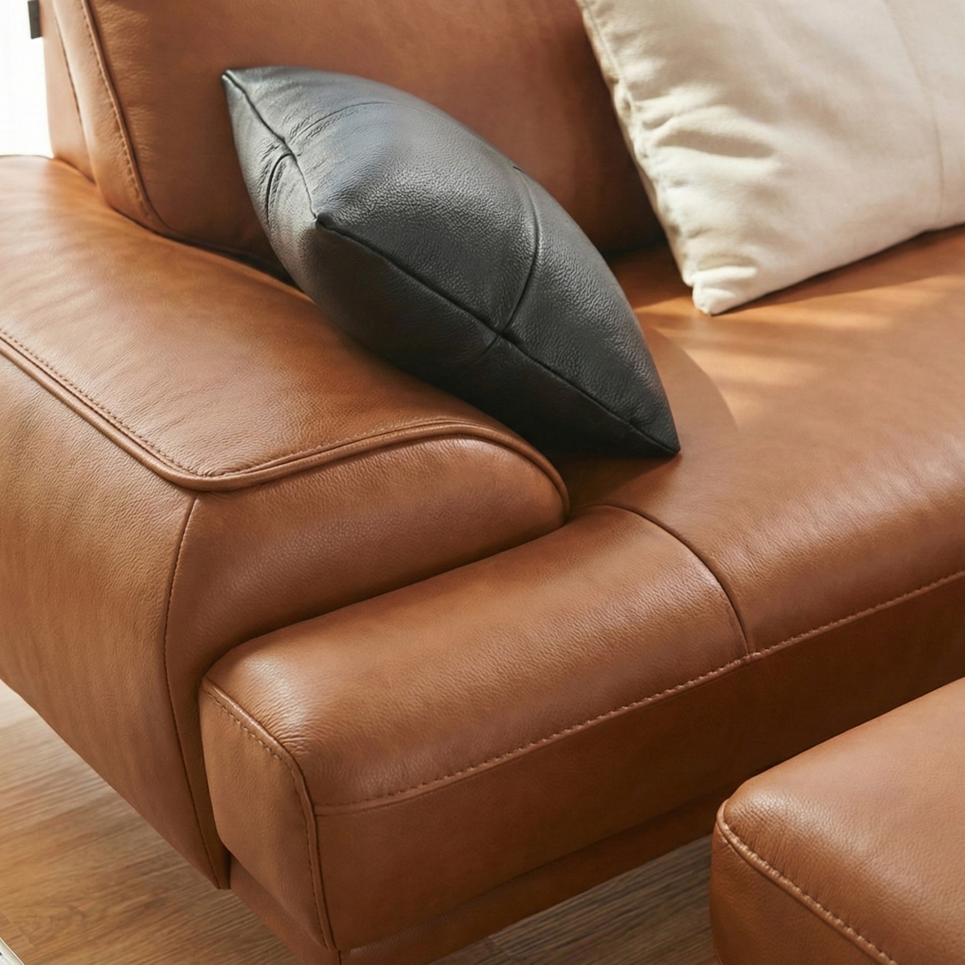 MILAN sử dụng sofa da cao cấp với màu nâu ấm áp #C2A68A, mang đến vẻ đẹp sang trọng và vượt thời gian. Bề mặt da được xử lý tiếp xúc trực tiếp để đảm bảo độ bền, giúp việc vệ sinh và bảo quản trở nên dễ dàng hơn bao giờ hết. Đây không chỉ là một chiếc sofa cao cấp, mà còn là món đồ nội thất đồng hành cùng gia đình bạn qua nhiều năm tháng.