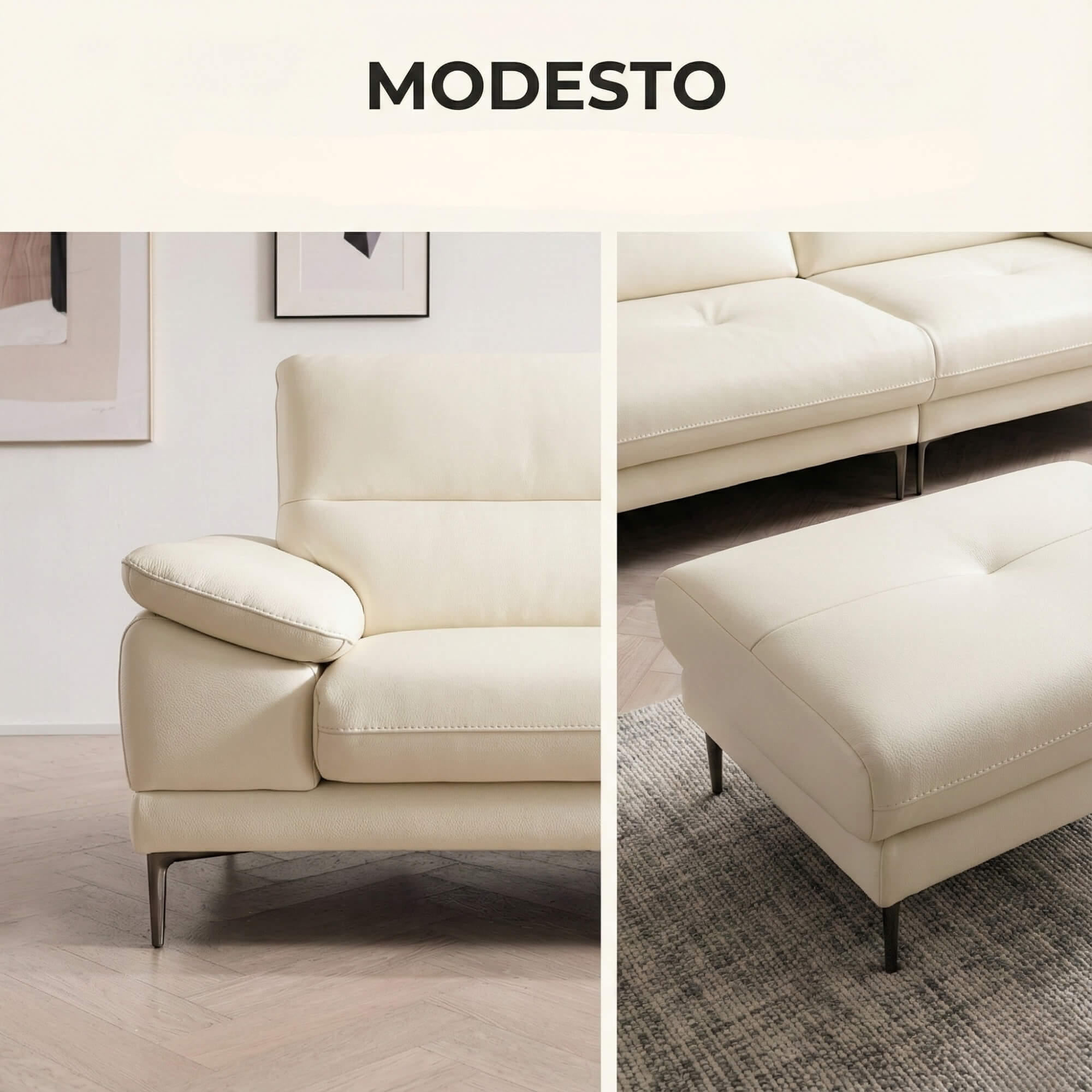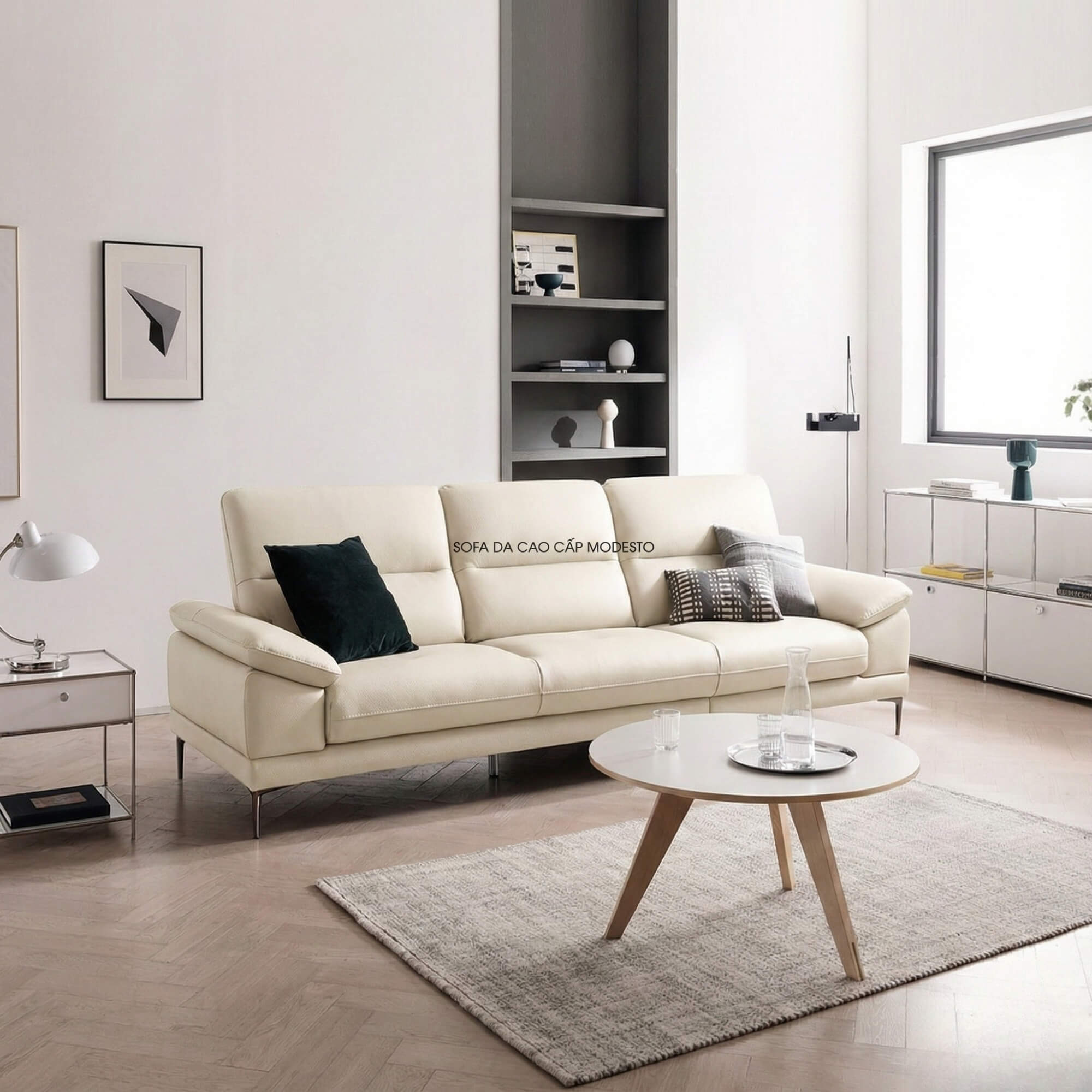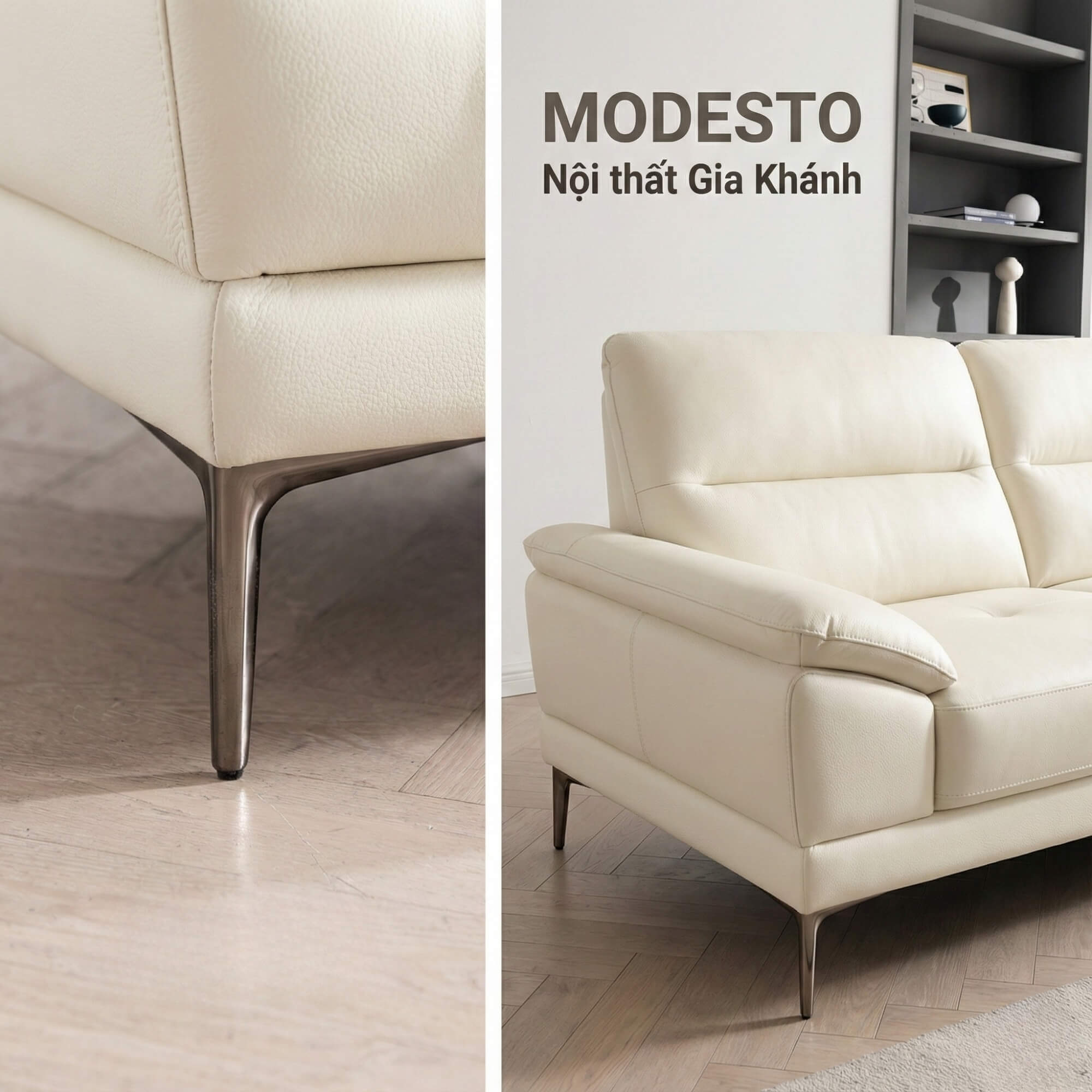 Với chất liệu sofa da cao cấp cho phần tiếp xúc nhiều nhất với bàn chân, giúp tối ưu hóa độ bền và sự thoải mái lâu dài, MODESTO xứng đáng là sự lựa chọn thông minh cho mọi gia đình. Sản phẩm từ Nội thất Gia Khánh luôn mang giá trị đặc biệt – không chỉ về chất lượng mà còn về sự tận tâm trong từng chi tiết.