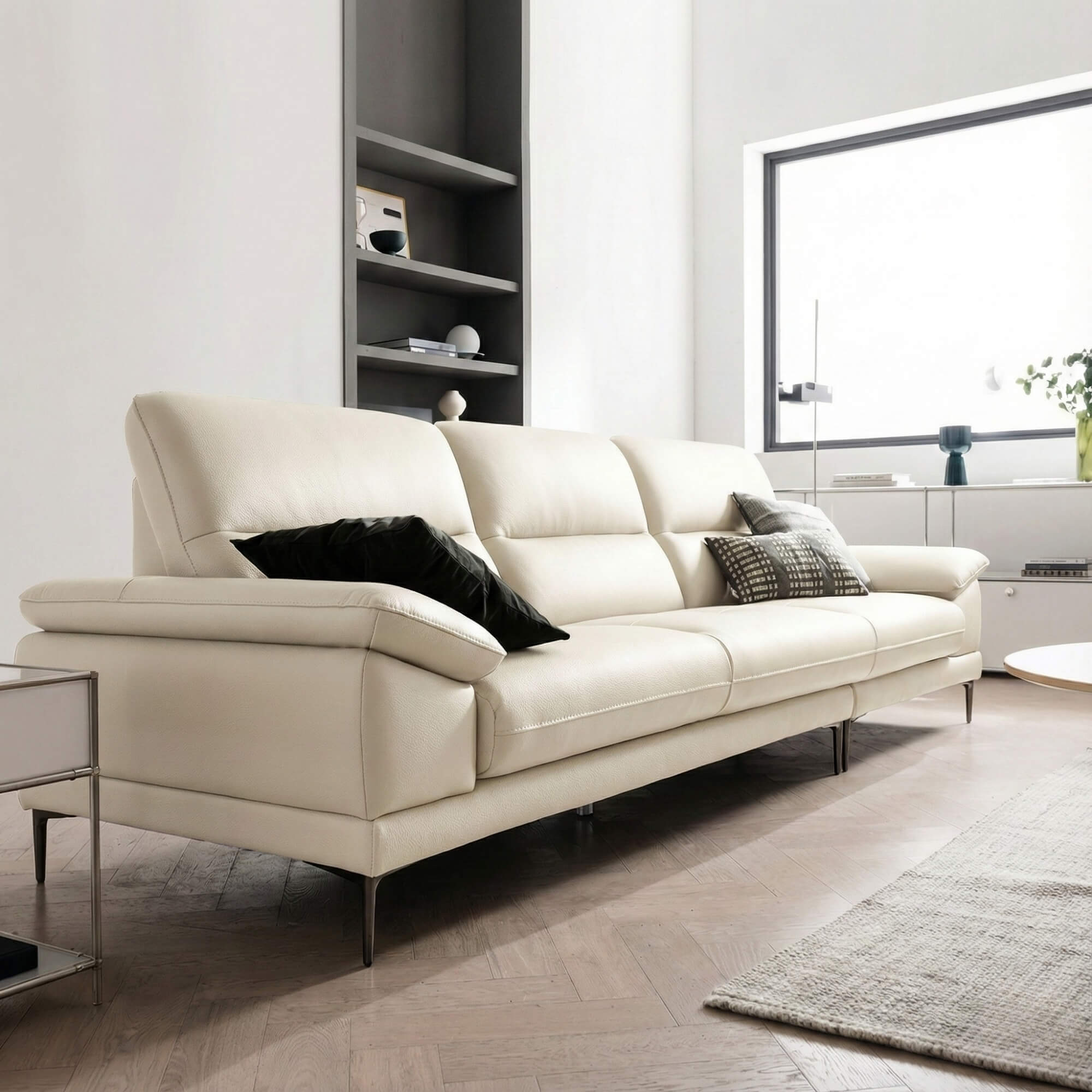Sofa MODESTO sở hữu thiết kế sofa băng 4 chỗ ngồi với kích thước ngang 3000mm, hoàn hảo cho không gian phòng khách rộng rãi và thoáng mát. Điểm đặc biệt của dòng sofa này nằm ở ghế đôn linh hoạt đi kèm – một chi tiết thiết kế thông minh cho phép bạn tự do sắp xếp, di chuyển mà không bị giới hạn bởi vị trí trái hay phải.