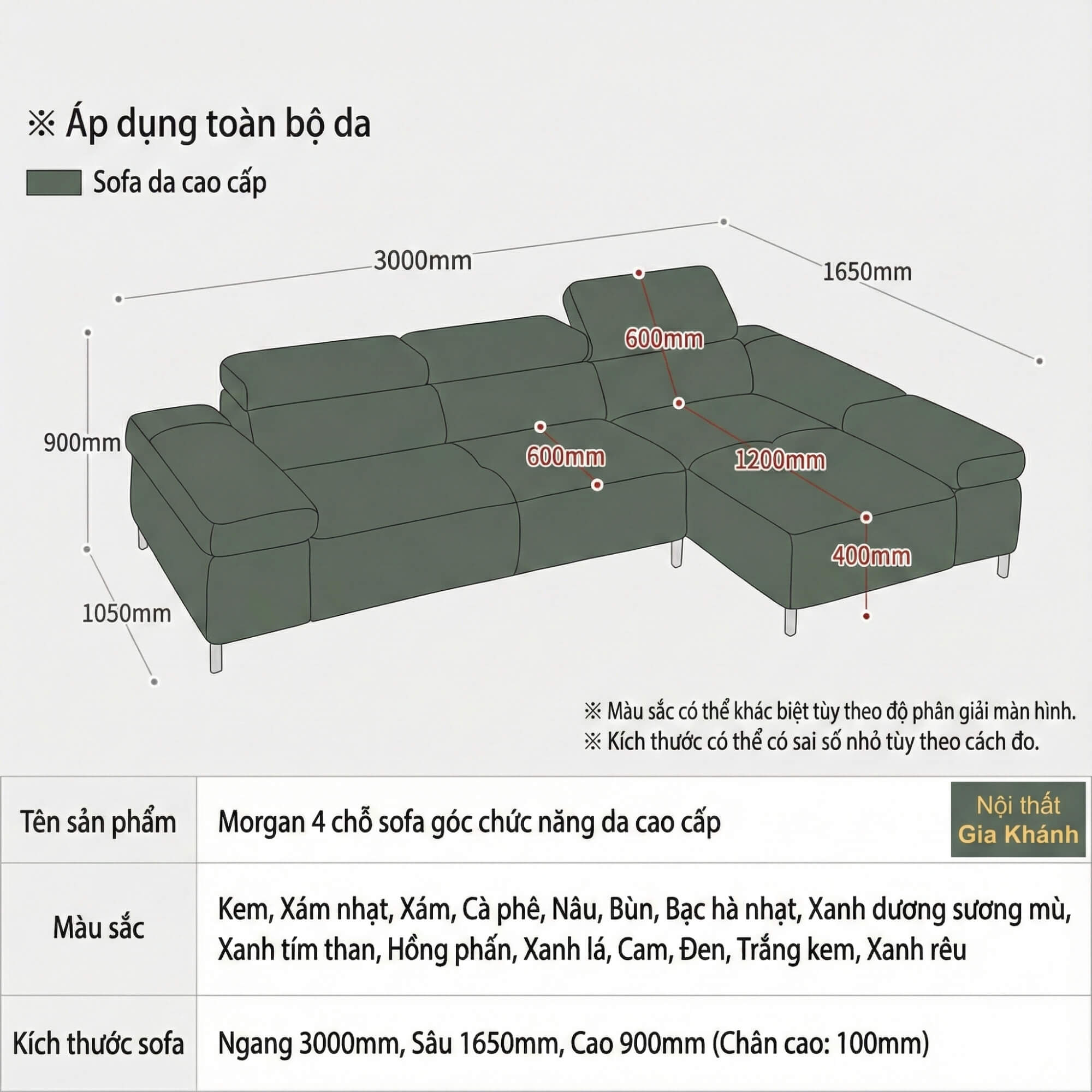- Sofa da Morgan 4 chỗ góc chữ L chức năng cao cấp: Lựa chọn lý tưởng cho gia đình đông người hoặc những ai yêu thích không gian rộng rãi, thoải mái.