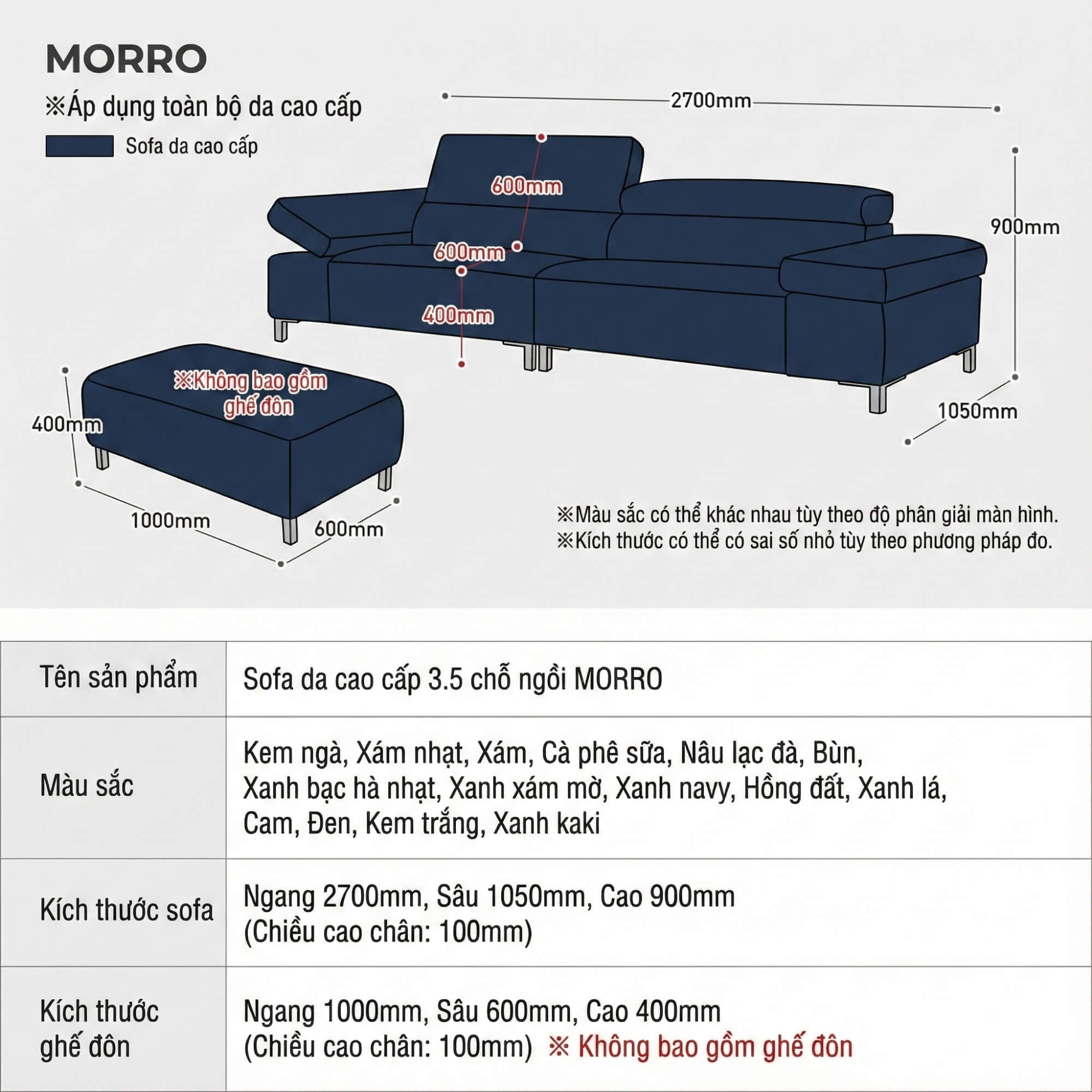 Sofa MORRO không chỉ là một món đồ nội thất đơn thuần, mà còn là biểu tượng của sự sang trọng, tiện nghi và đẳng cấp. Với chất liệu da cao cấp, thiết kế hiện đại và khả năng điều chỉnh linh hoạt, sofa MORRO chắc chắn sẽ là điểm nhấn hoàn hảo cho phòng khách của bạn.