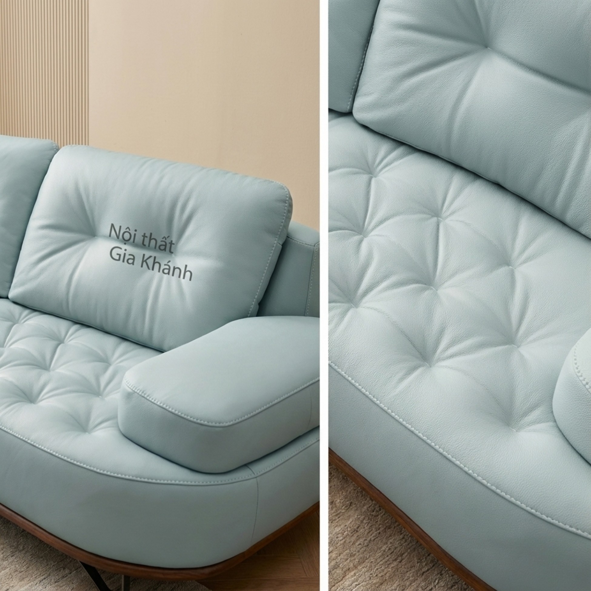 Vật liệu cao cấp được Nội thất Gia Khánh tuyển chọn kỹ lưỡng, đảm bảo độ mềm mại, bền đẹp theo thời gian và dễ dàng vệ sinh. Bề mặt da cao cấp không chỉ mang lại cảm giác sang trọng mà còn có khả năng chống trầy xước tốt, giúp sofa luôn giữ được vẻ đẹp như mới sau nhiều năm sử dụng.