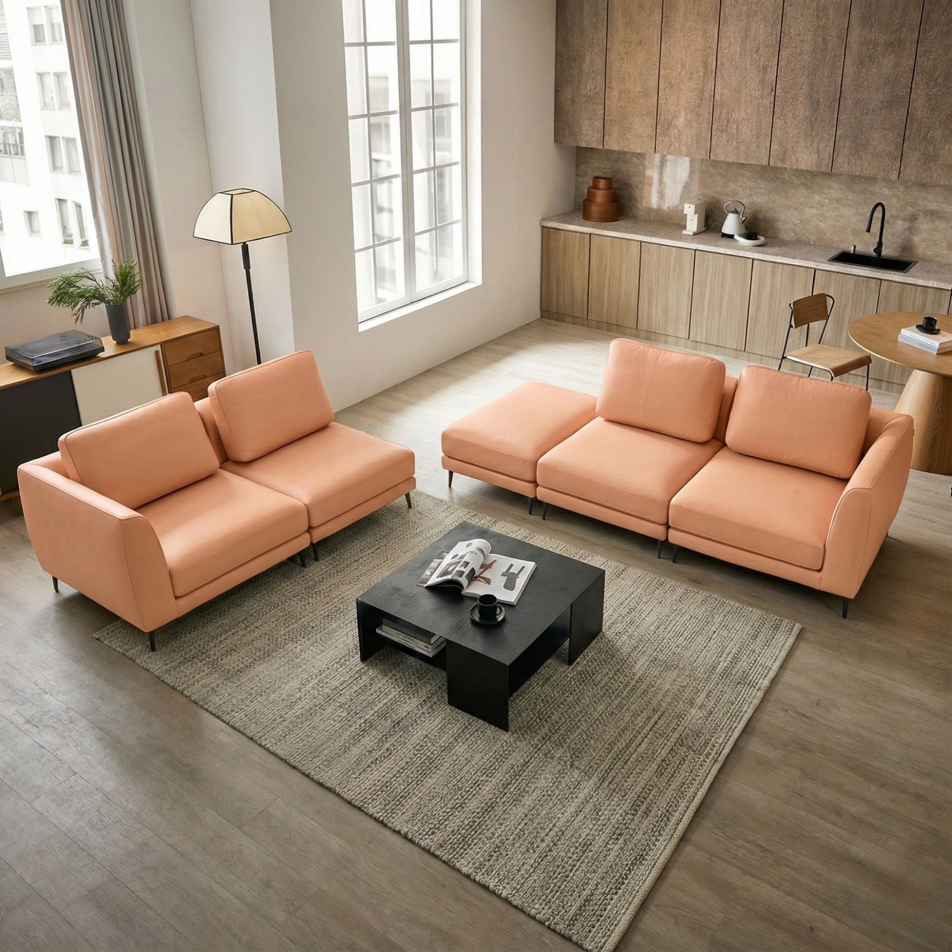 Bạn có thể tự do sắp xếp với 3 module để tạo sofa băng nhỏ gọn cho căn hộ chung cư, hoặc kết hợp thành bộ sofa 6 chỗ rộng rãi, thậm chí biến tấu thành sofa góc chữ L đầy phong cách.