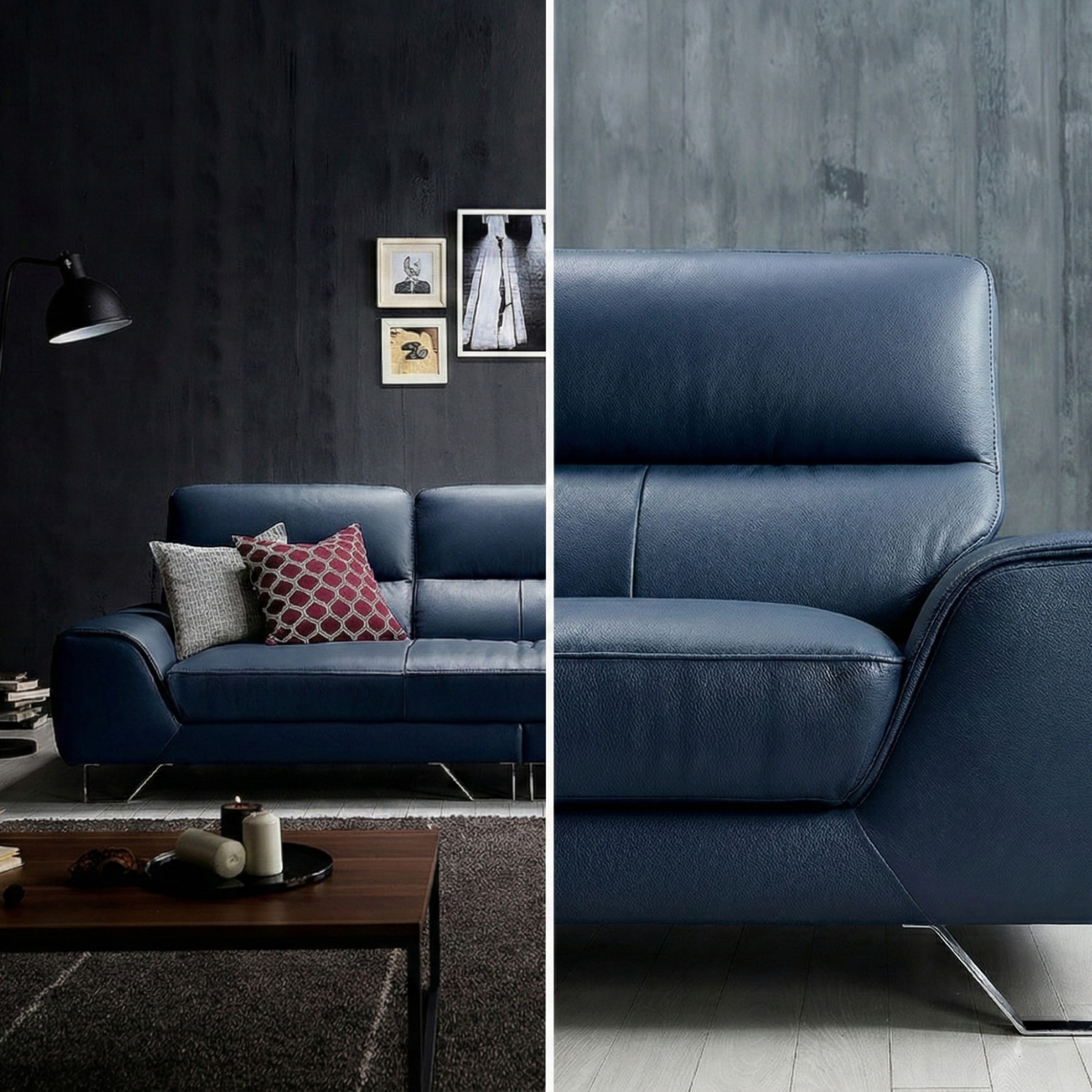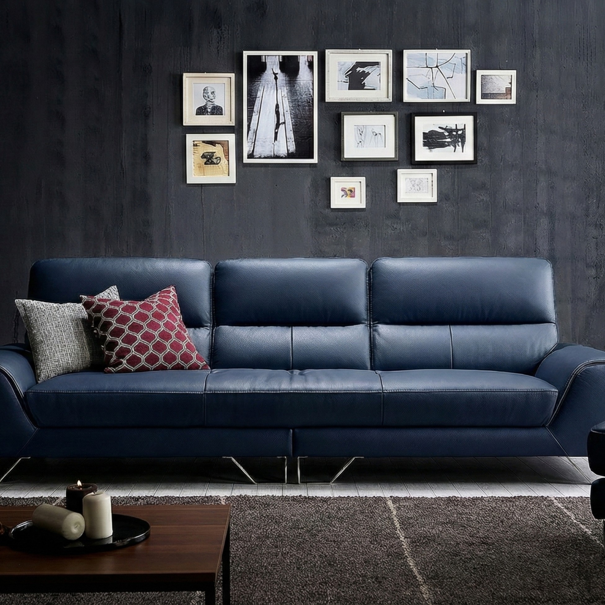 *”Tôi đã tìm kiếm một bộ sofa có chân để dễ dàng vệ sinh gầm ghế, ưu tiên màu sắc tôi yêu thích là Xanh Navy, và chất liệu da cao cấp để bền bỉ khi dùng cho gia đình có trẻ nhỏ, với mức giá hợp lý…