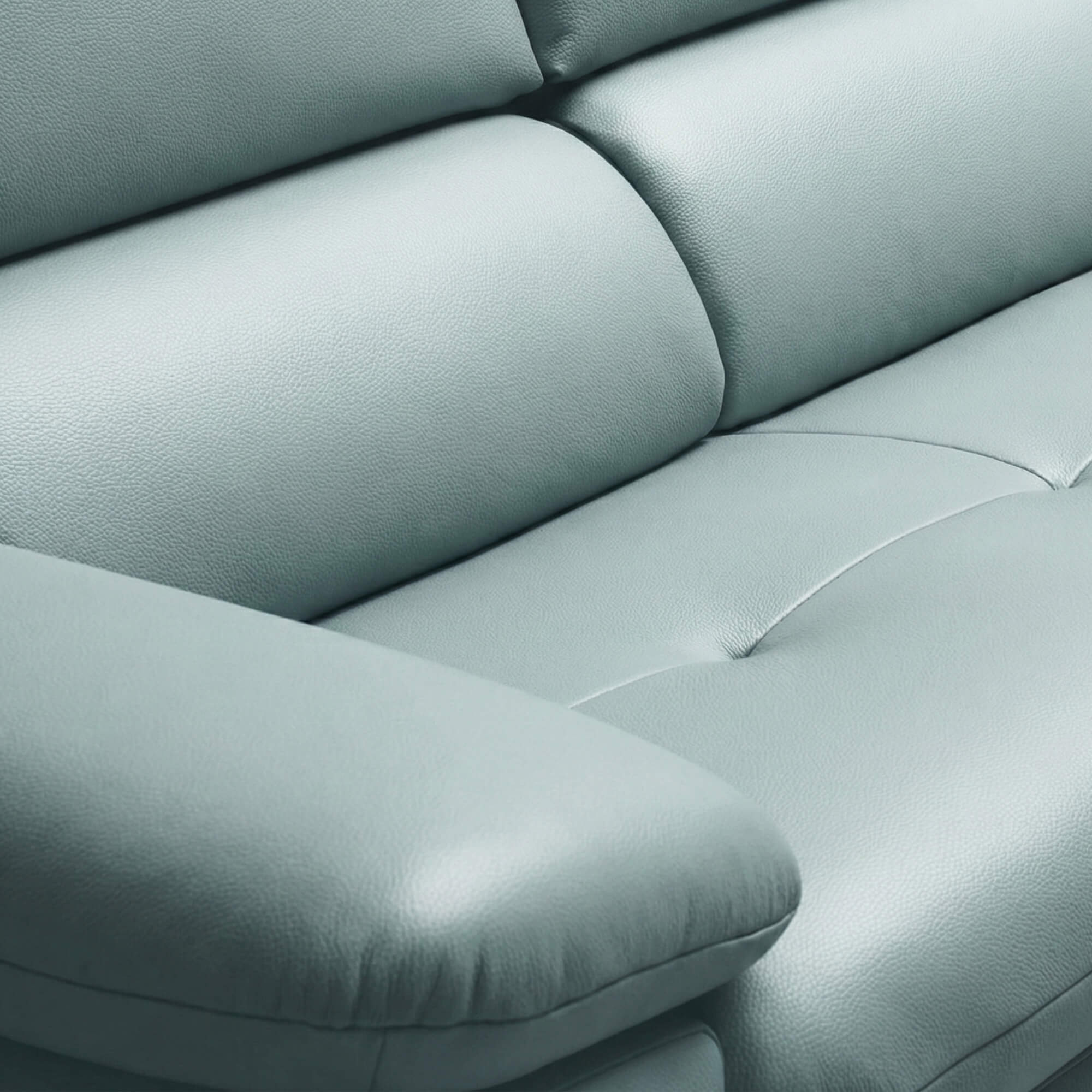 Điểm nhấn đầu tiên khiến sofa RUCELLEUX trở nên đặc biệt chính là chất liệu da cao cấp với độ mềm mại và độ bền vượt trội. Được làm từ da nguyên tấm chất lượng cao, cơ ngót 80-90%, sofa không chỉ mang đến cảm giác êm ái khi ngồi mà còn vô cùng dễ vệ sinh và bảo quản.