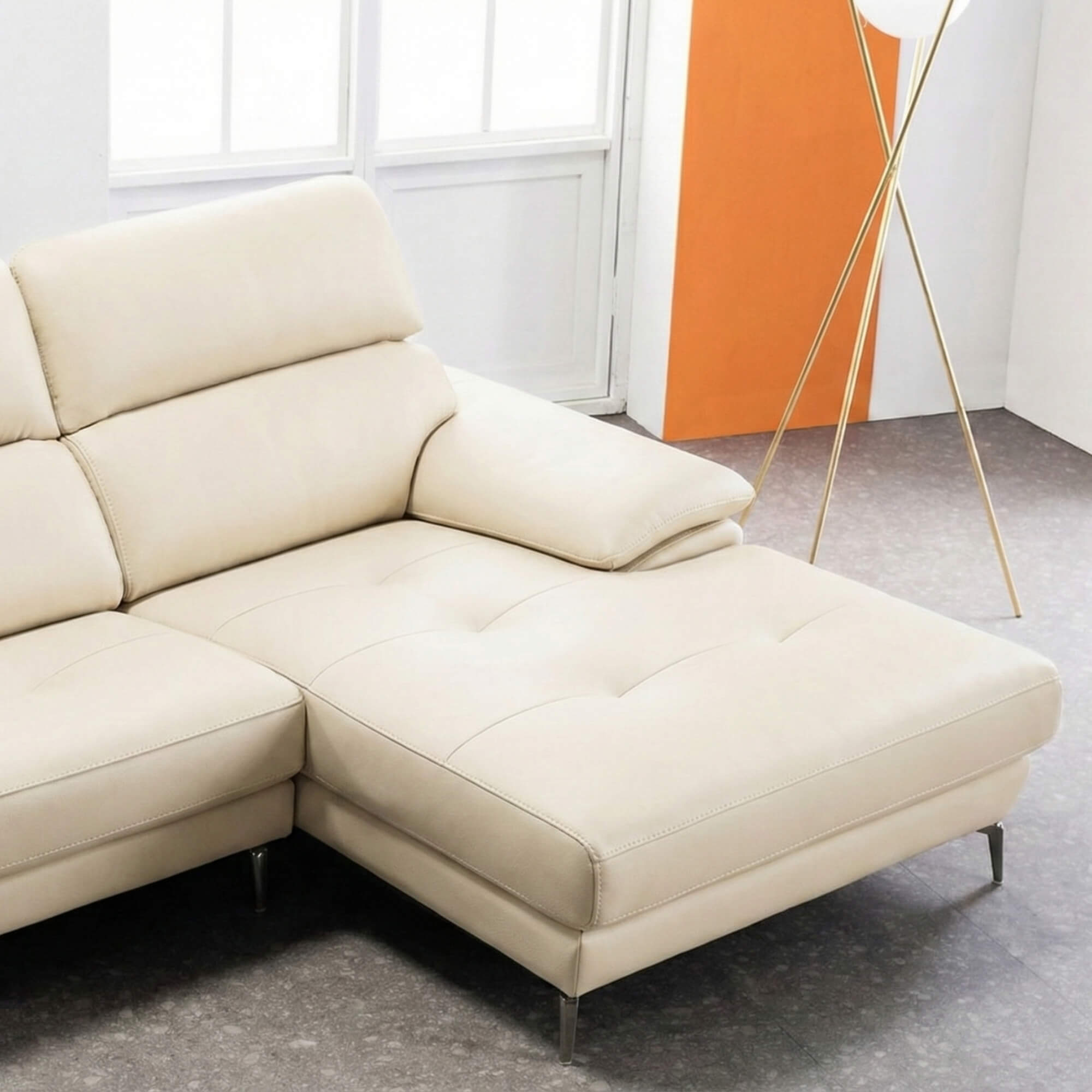 Thiết kế chân cao thanh lịch tạo nên không gian sang trọng, đồng thời giúp dễ dàng vệ sinh gầm sofa, giữ cho phòng khách luôn sạch sẽ, thoáng mát. Với chiều cao chân 120mm, việc lau chùi và quản lý không gian dưới gầm sofa trở nên vô cùng thuận tiện – một điểm cộng lớn mà không phải bộ sofa nào cũng có.