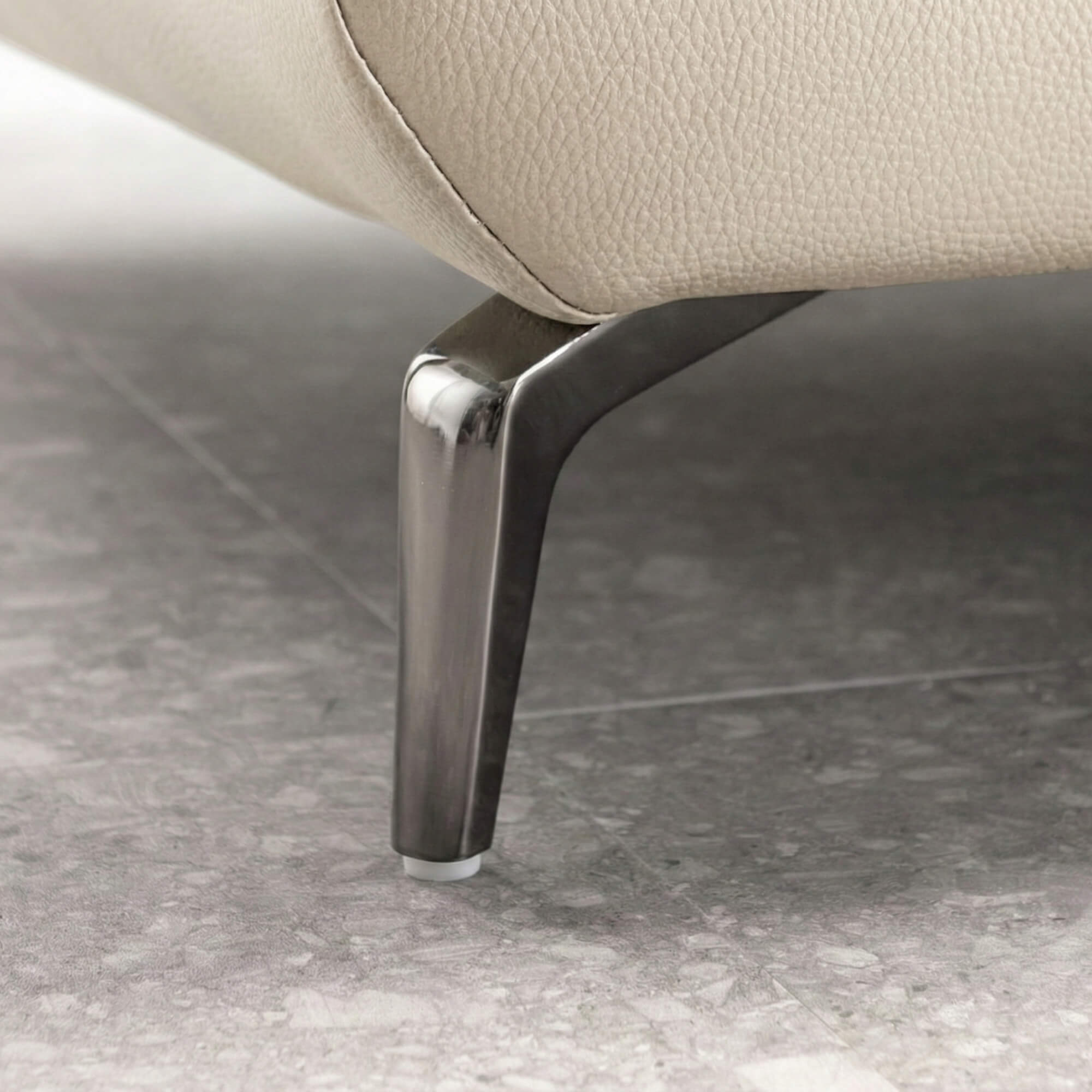 Chân đế được gia công tỉ mỉ với đường nét tinh tế, hoàn thiện gọn gàng, không lo giẫm da. Chân độ phụ giúp chống lún đệm ngồi và cân bằng trọng tâm sofa, đảm bảo độ ổn định tối đa khi sử dụng. Chiều cao của chân đế có thể điều chỉnh thủ công bằng cách xoay – một tính năng thông minh giúp bạn dễ dàng điều chỉnh khi sàn nhà không bằng phẳng hoàn toàn.