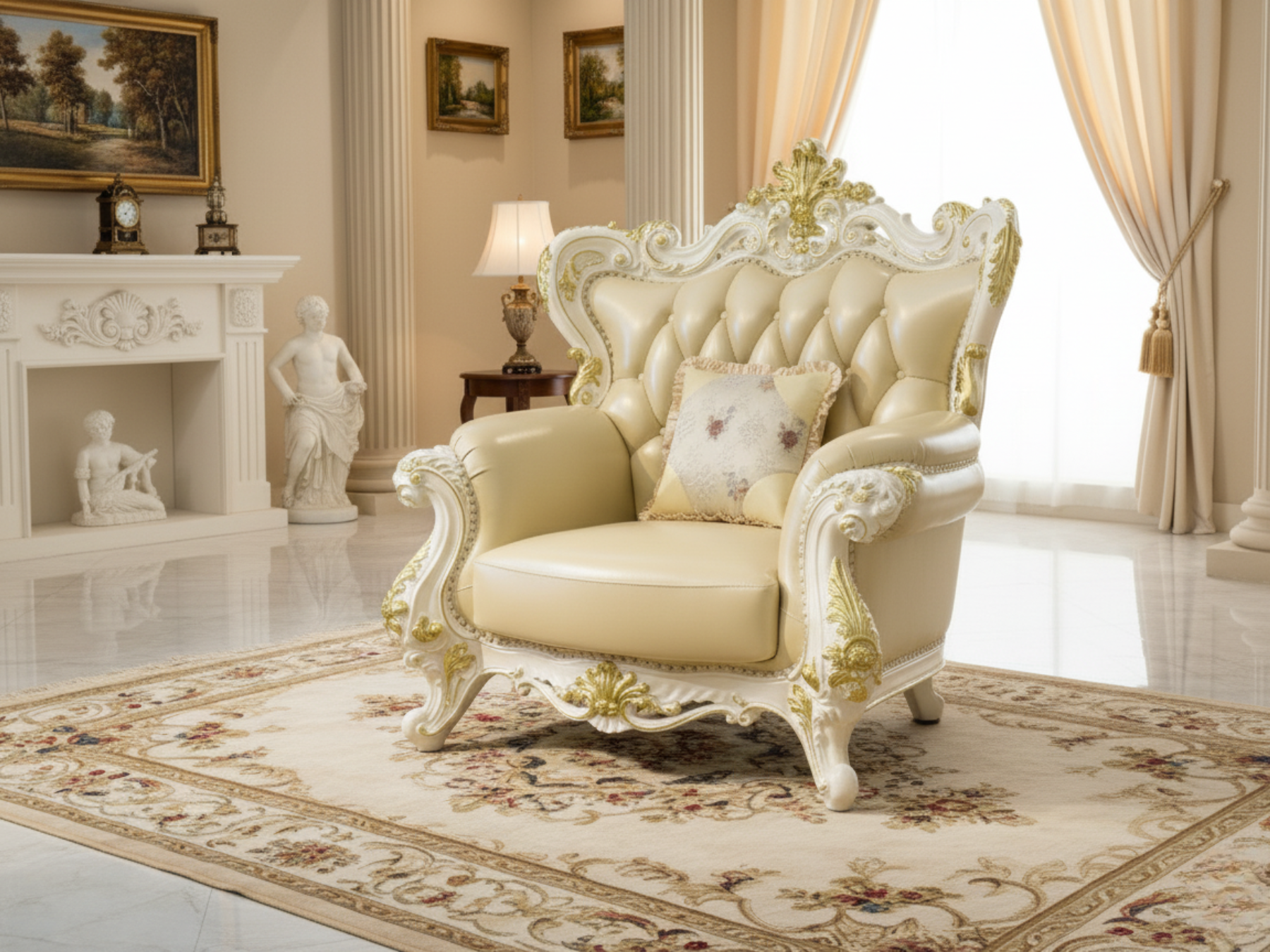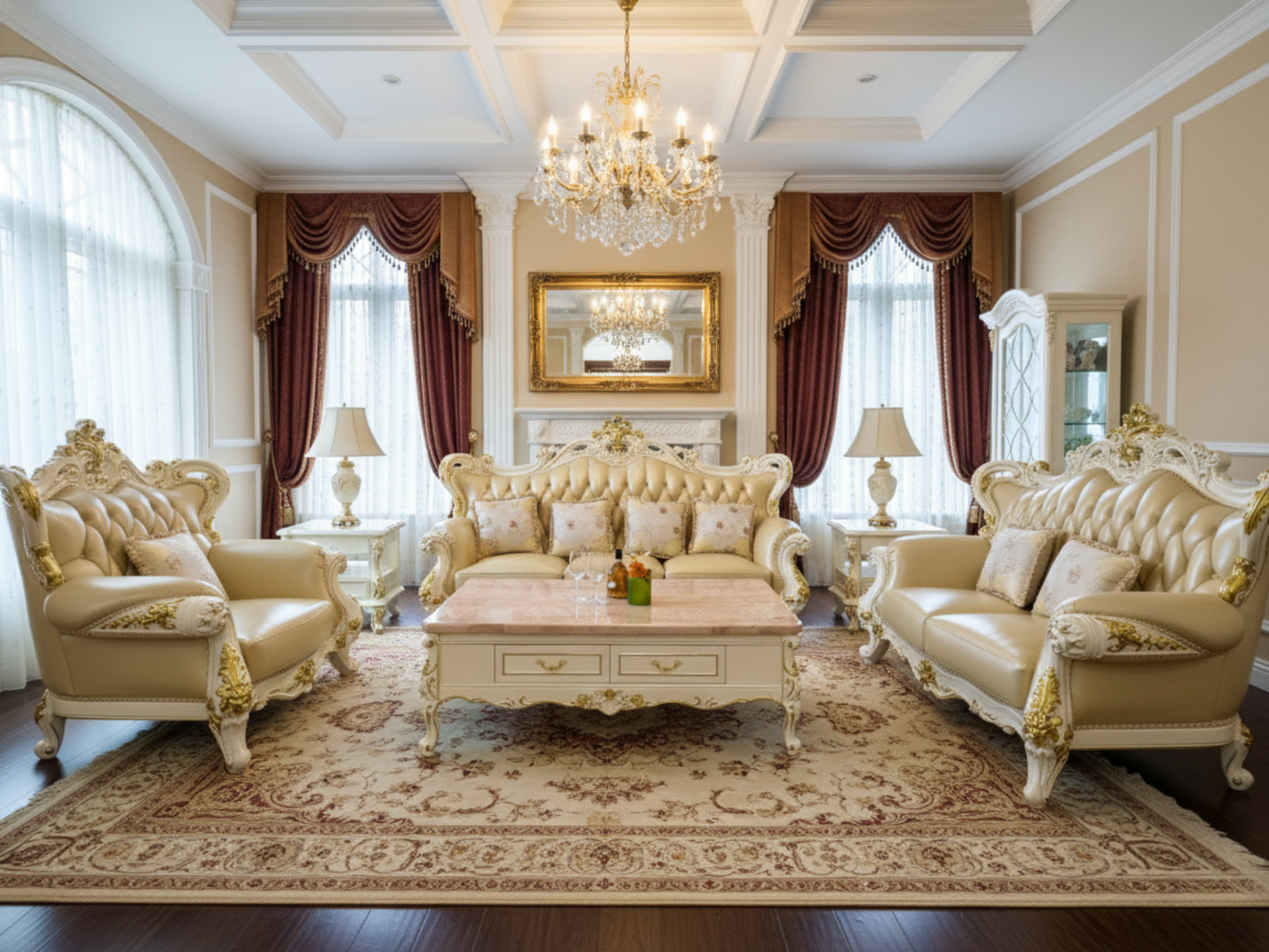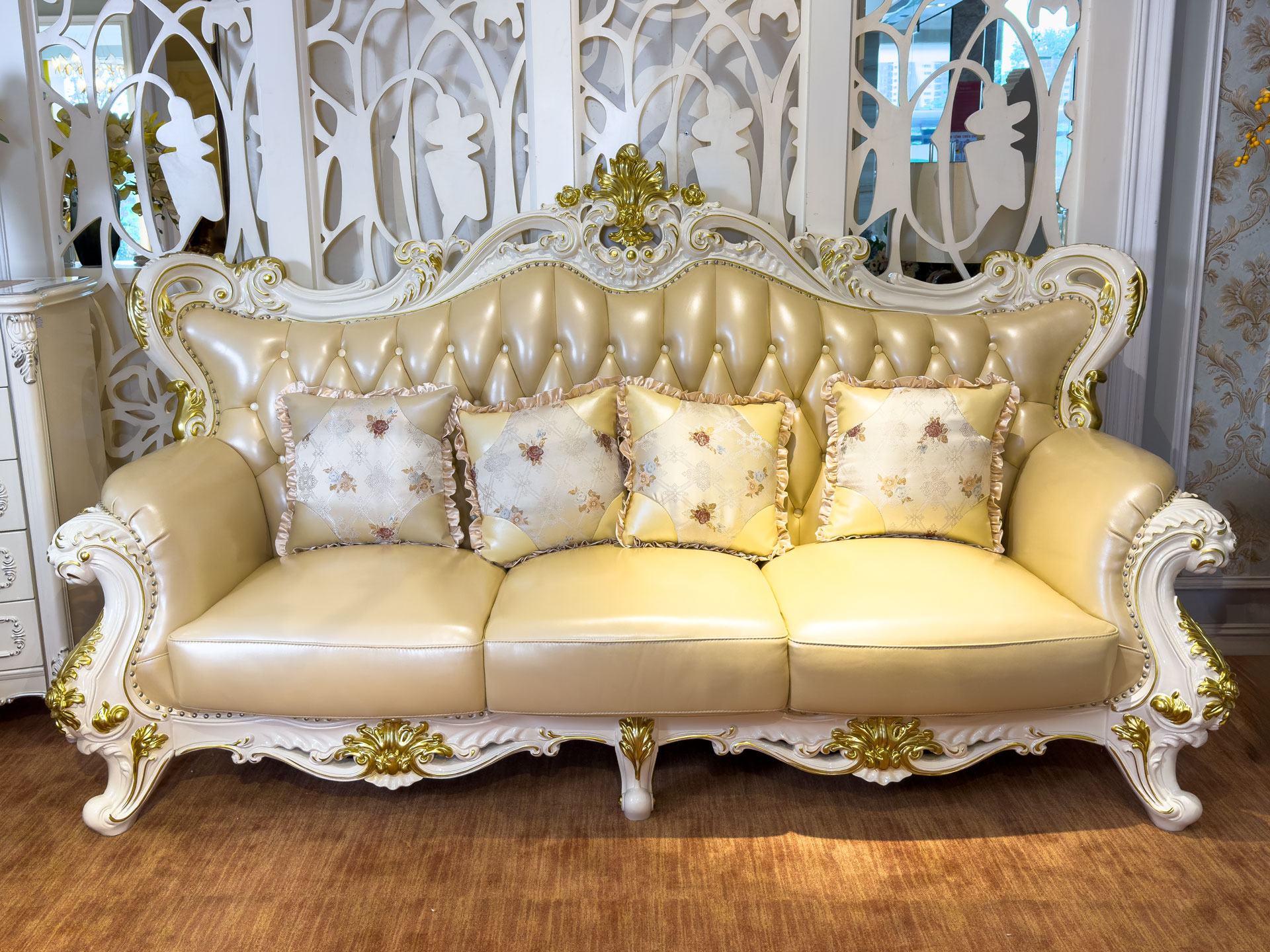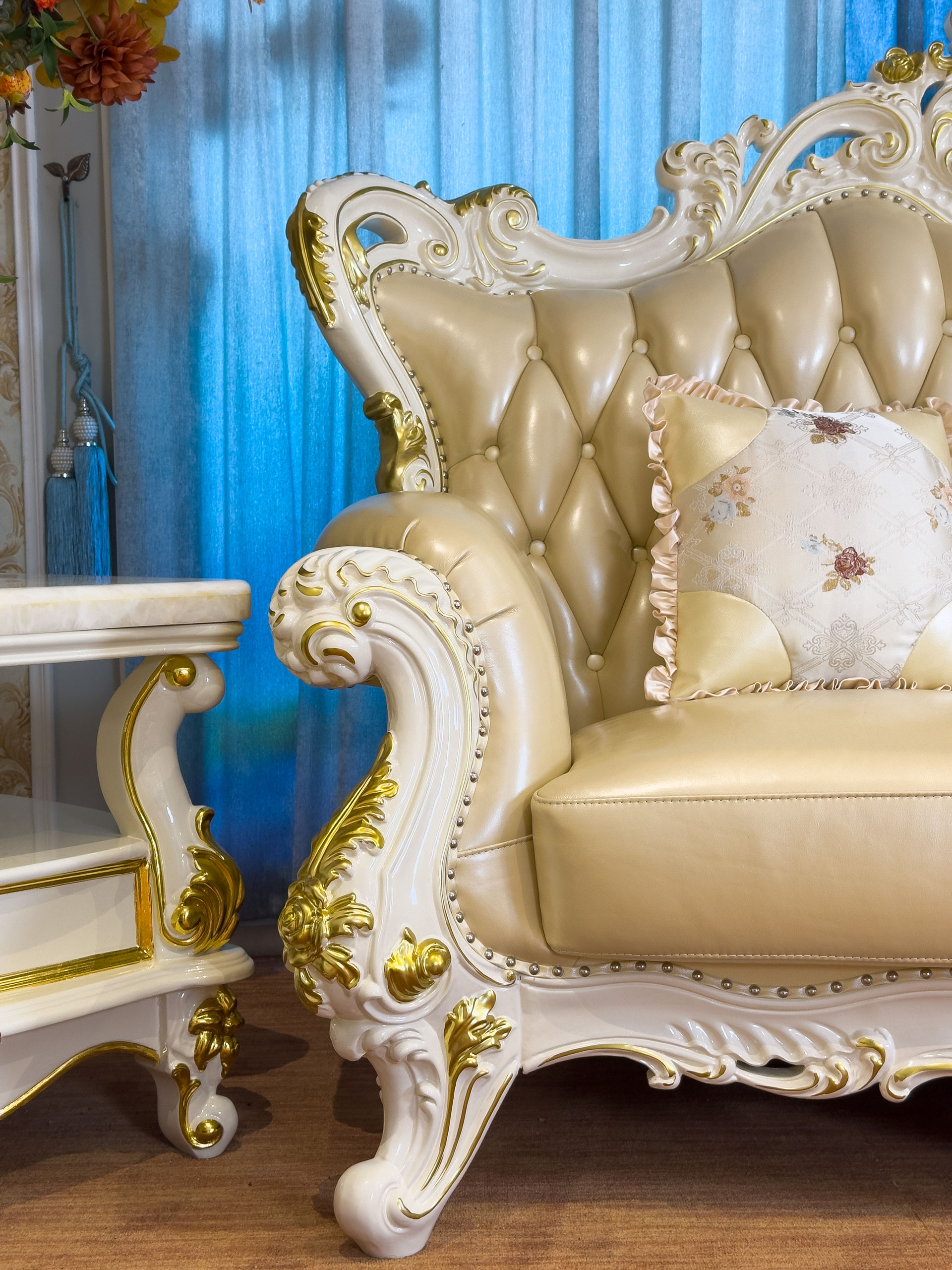 Bộ ghế Sofa Tân Cổ Điển SB919-123 Không chỉ đặc biệt trong kiểu dáng, các loại ghế sofa tân cổ điển còn được làm bằng các chất liệu cao cấp đặc biệt mang lại cảm giác sang trọng ngay lần đầu được tiếp xúc. Đa phần các loại sofa tân cổ điển thường sử dụng các nguyên liệu như gỗ tự nhiên, các chất liệu da thật được chế tác cầu kì.