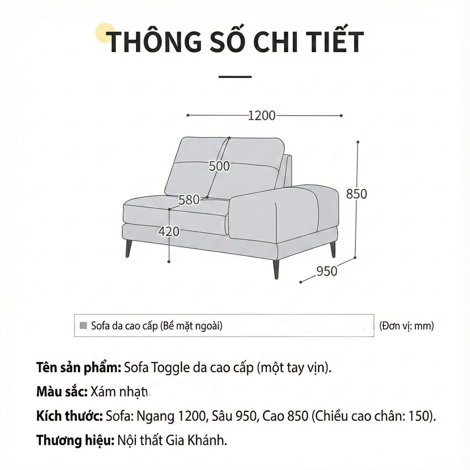 Với kích thước được thiết kế tiêu chuẩn cho sofa phòng khách: