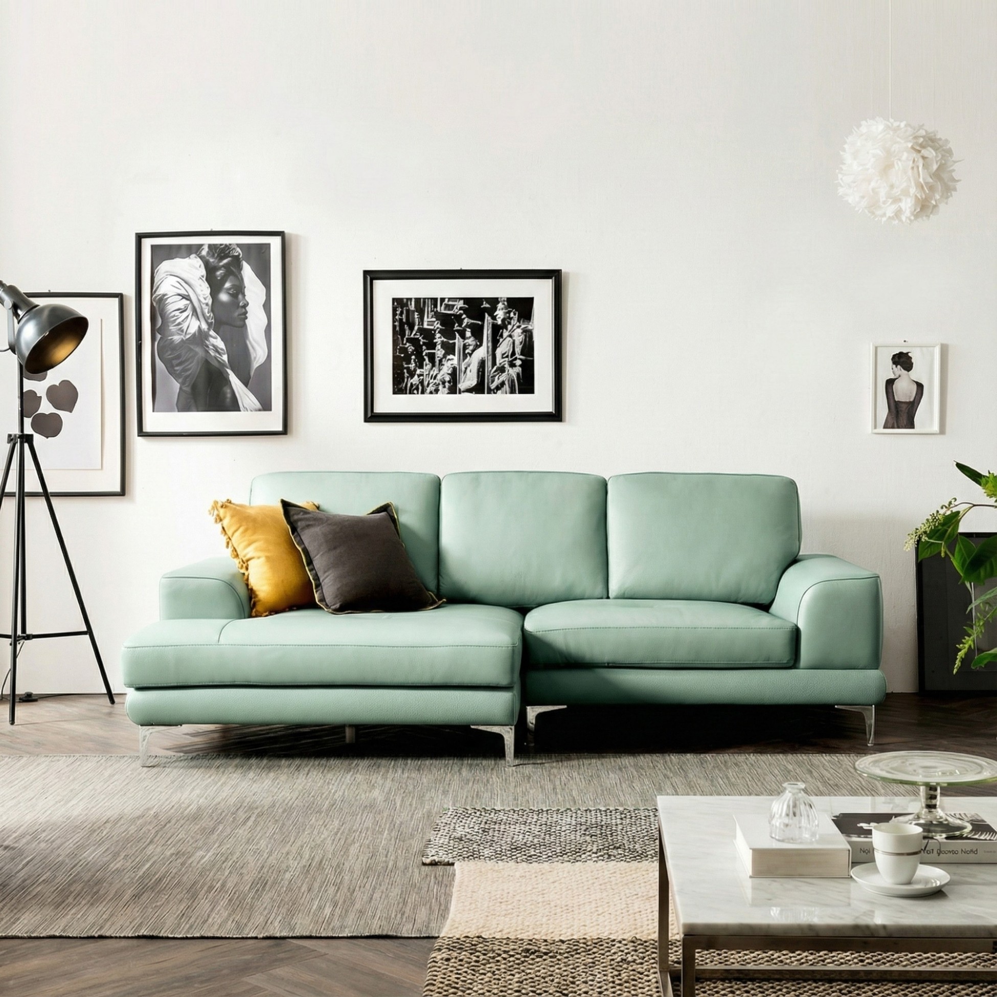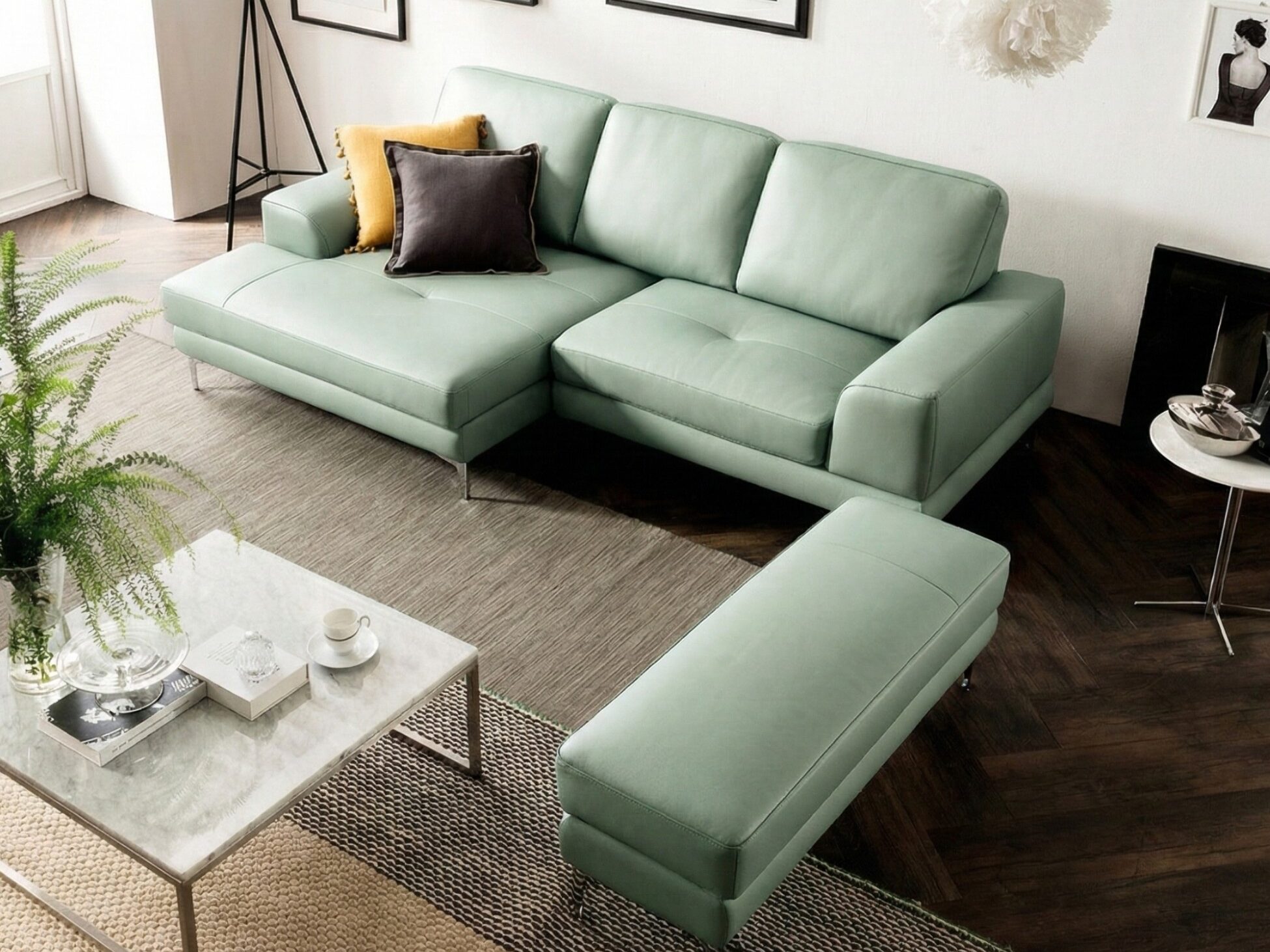 Ví dụ: sofa da cao cấp – Bạc hà nhạt, Kem