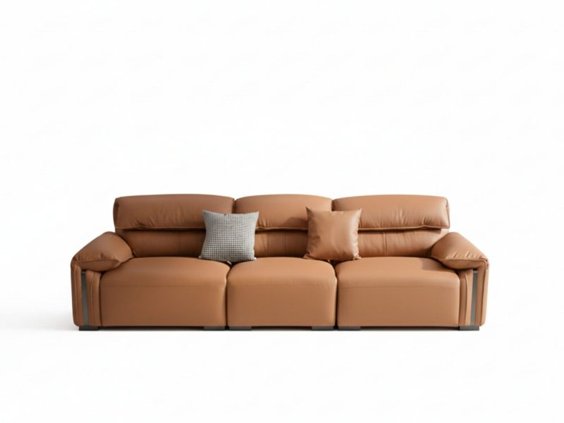 Sofa Malaysia với da Pigmented lại là câu chuyện khác. Bề mặt da được xử lý kỹ hơn, có lớp phủ polymer bảo vệ. Cảm giác chạm hơi trơn láng, lạnh hơn một chút so với da Ý, nhưng đổi lại bạn có được sự an tâm. Trẻ nhỏ làm đổ nước ngọt? Lau ngay là sạch. Thú cưng nhảy lên? Ít lo bị xước hơn. Không cần điều hòa 24/7 để kiểm soát độ ẩm.